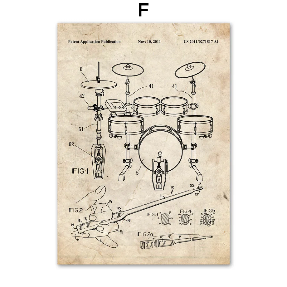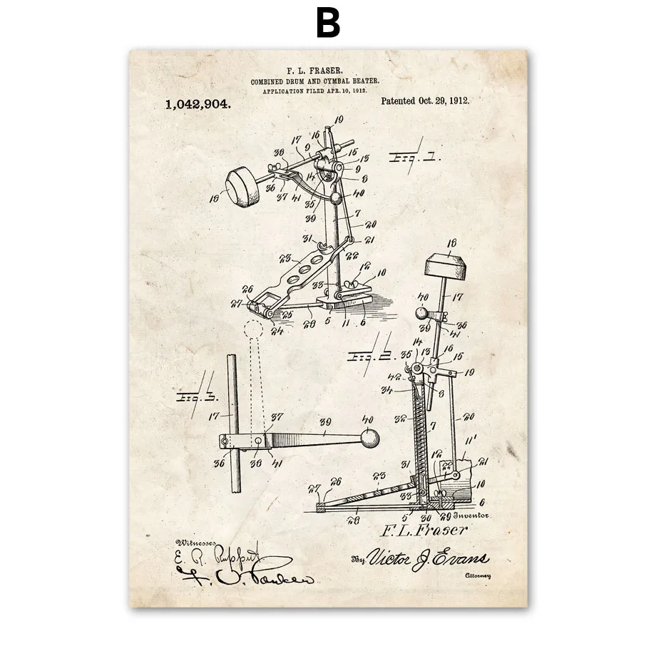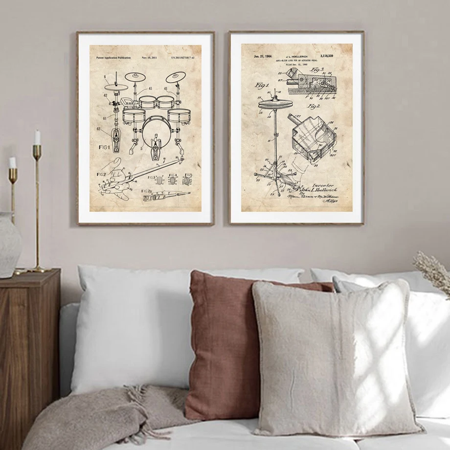 Скандинавский винтажный постер барабан набор патентные рисунки наст...