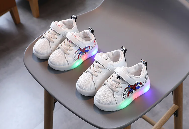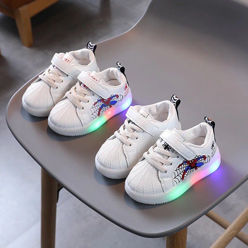 Дисней Детская Пижама с человеком-пауком; Светящиеся кроссовки, детская обувь для маленьких мальчиков и девочек светящиеся кроссовки для мальчиков с персонажами из мультфильмов, LED обувь для детей