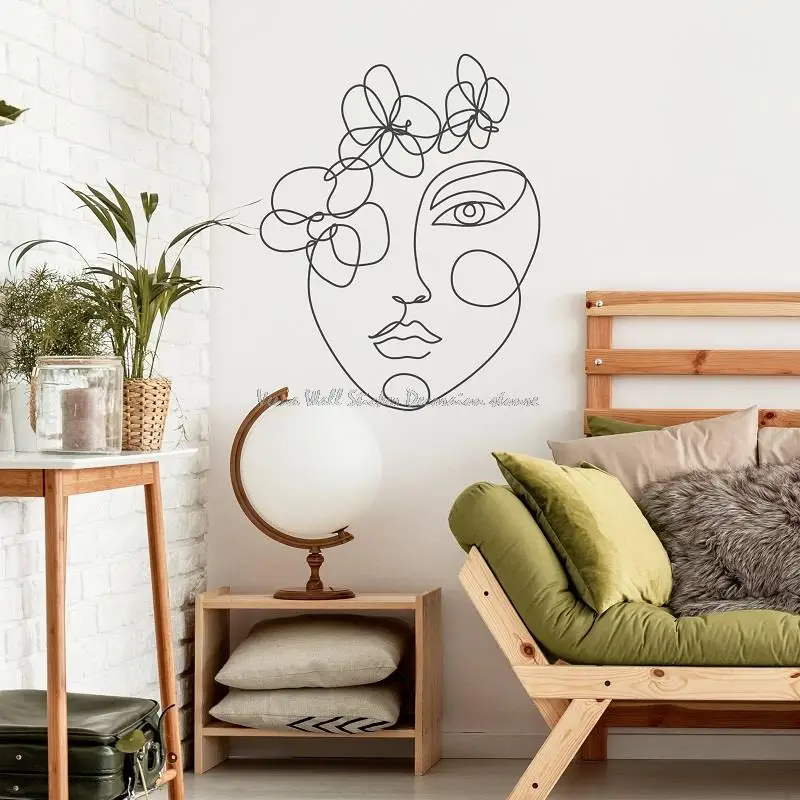 Наклейка на стену с изображением линий, абстрактная женщина, цветок, современный минималистичный, для спальни, домашней кровати, Виниловая наклейка в стиле арт-деко, подарок для девушки