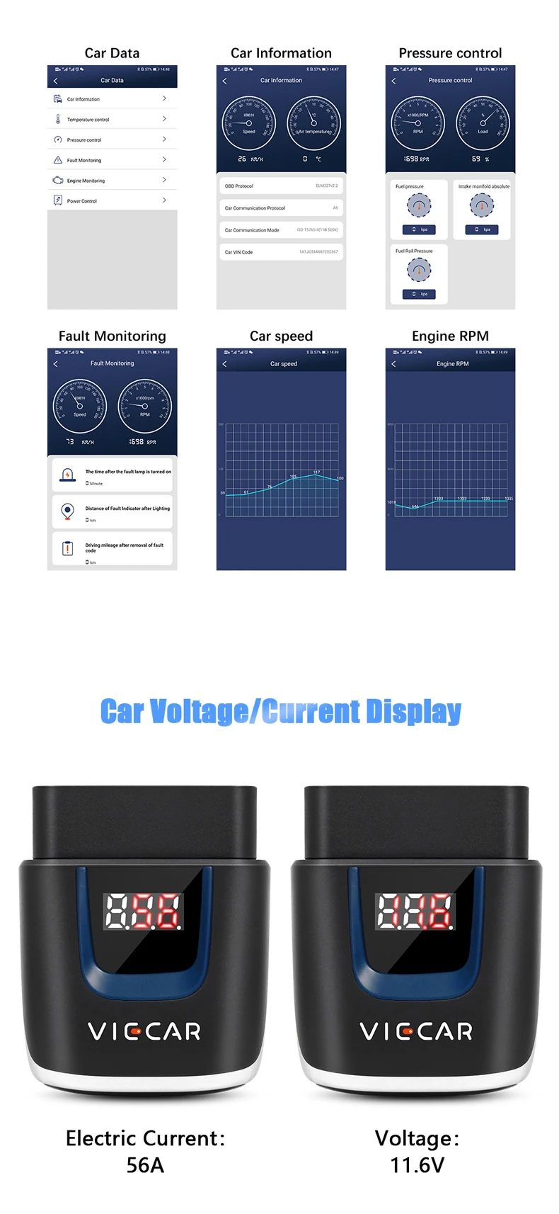 Считывание диагностического кода ошибкиОчистить код неисправности (очистить код ошибки и выключить MIL)Обороты двигателя в минуту (об/мин)Расчетное значение нагрузкиТемпература охлаждающей жидкостиСостояние топливной системыСкоростьКраткосрочная топливная ситуацияДолгосрочная топливная ситуацияДавление впускного коллектораВремя закачки топливаТемпература всасываемого воздухаСкорость воздухаАбсолютное Положение Дроссельной заслонкиНапряжение обнаружения кислорода, связанное с краткосрочным состоянием топливаСостояние топливной системыДавление топливаКонтроль расхода топлива и т. Д.Примечание: количество элементов данных, поддерживаемых разными модельными годами, также отличается, и фактическая ситуация с поддержкой имеет преимущественную силу.Технические параметры:SSID: ViecarОсновной чип управления: PIC18F25K80Программная платформа: Поддержка Android / Windows / iOSРабочее напряжение: 9 ~ 3 6 В постоянного токаРабочий ток: 40 мАТок в режиме ожидания: 5 мАРабочая среда: -20 ~ 65 ℃Температура хранения: -40 ~ 80 ℃Размеры: 56*45,8*24 мм
