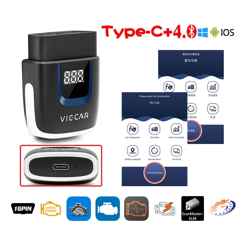 Item NameViecar ELM 327 V2.2 Bluetooth 4.0+Ty-pe C Scanner