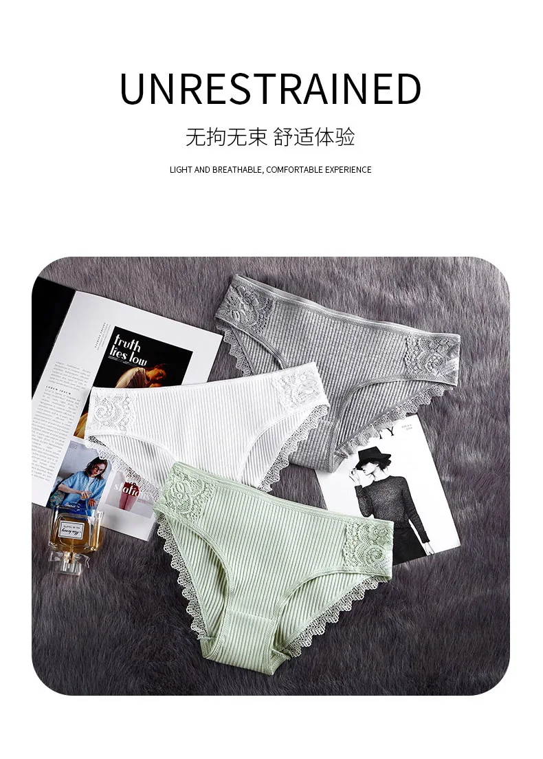 Женские трусики из хлопка с кружевами, удобное женское нижнее белье...