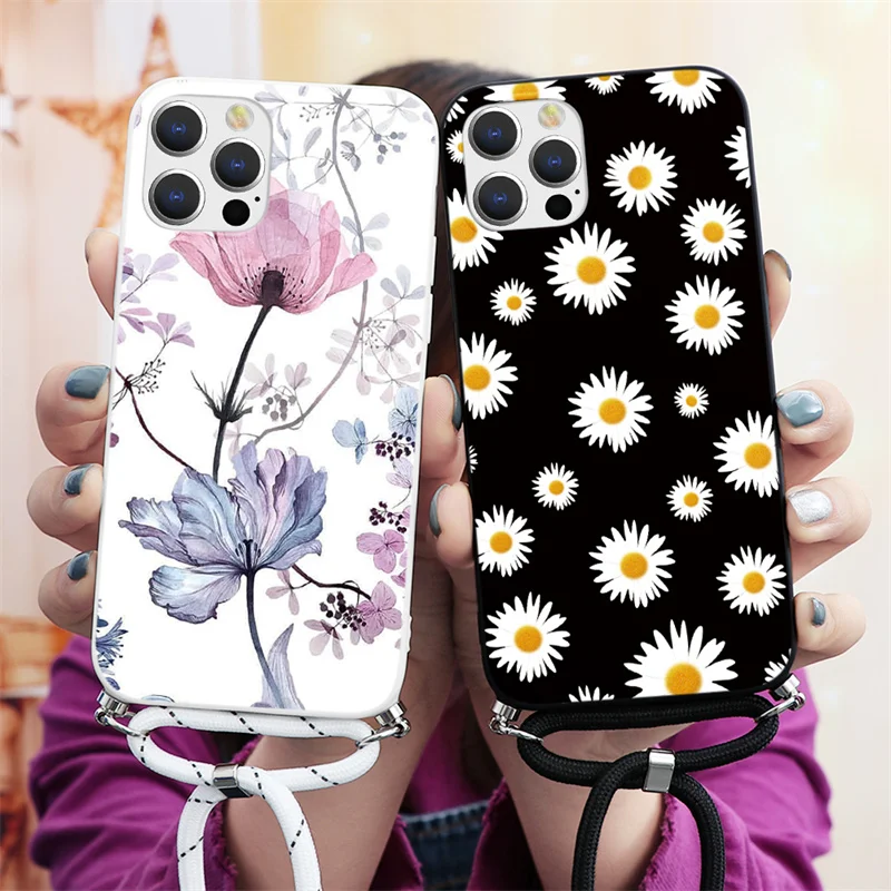 Мягкий чехол из ТПУ для Xiaomi Redmi Note 10, 9, 8, 7, 6 Pro Lite, 8T, 9S, 9A, 7A, Poco X3 NFC F3, Mi 10T, 9T, A3, чехол с ожерельем и ремешком
