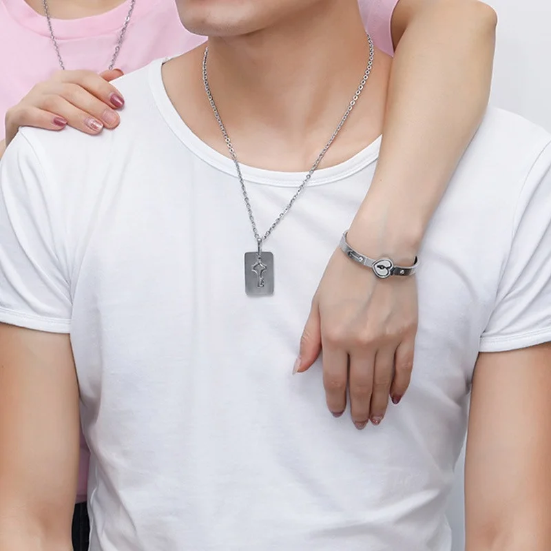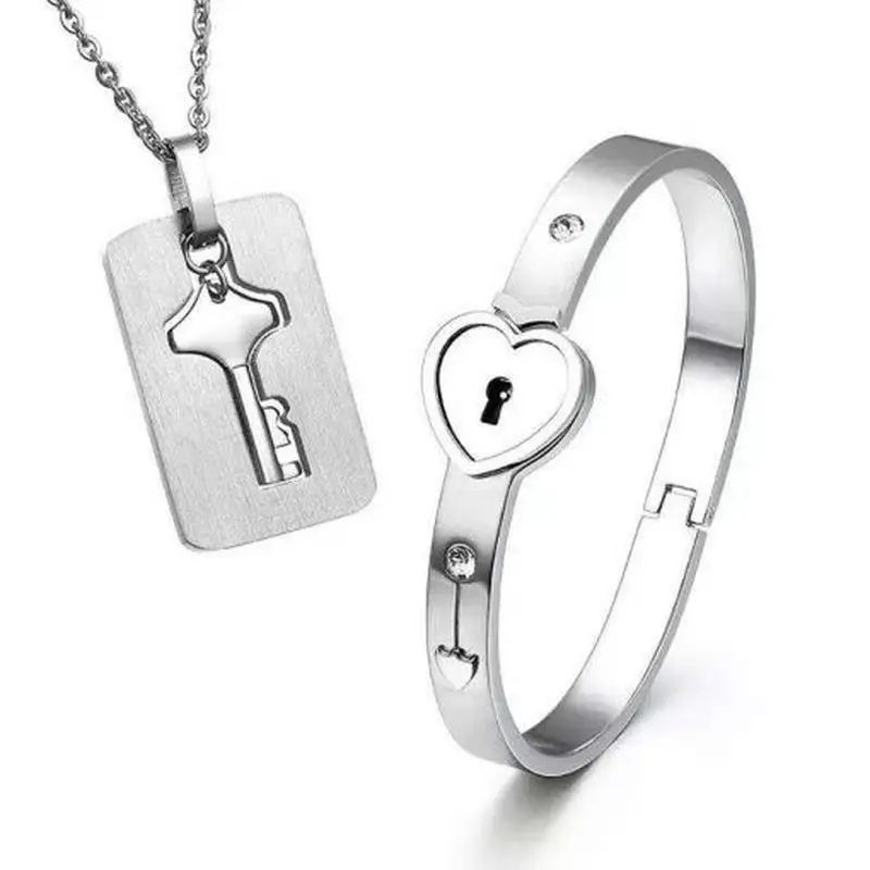 Набор парных ключей с замком, ожерелье и браслет для влюбленных, лу...