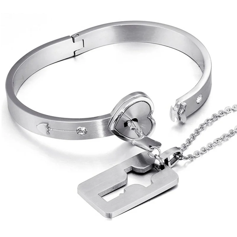 Комплект ювелирных изделий для пар, браслет, сердце, замок, браслет, ожерелье для женщин и мужчин, колье с двумя ключами, хороший подарок на день Святого Валентина, 2 шт.