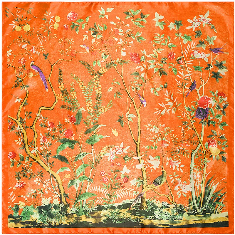 Шарф женский Шелковый квадратный, 90 на 90 см, с зеленым деревом