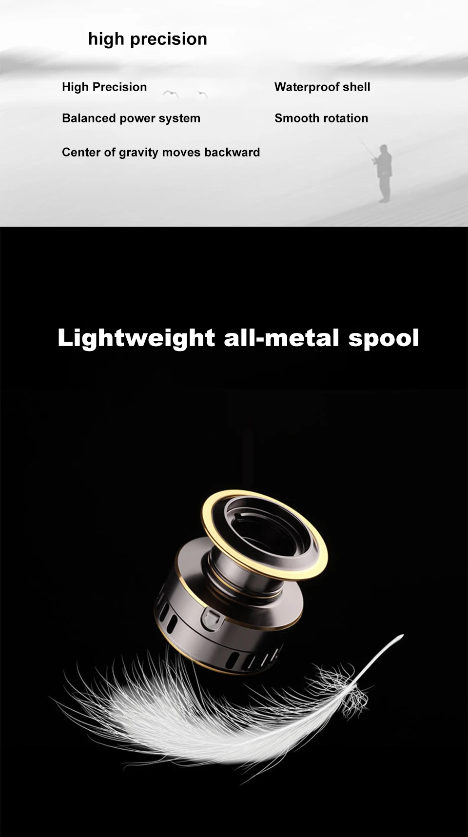 1). Мощность ротора: обновление динамической симметрии конструкции ротора, похудение и легкая регулировка, легкий, но сильный.2). Светильник и технология питания: Ультратонкий корпус и металлическая катушка с ЧПУ идеально подходят для длительной рыбалки.3). Мощная Тормозная система: обеспечивает мощное сопротивление, до 10 кг.4).12 шариковых подшипников обеспечивают плавную работу.5). Прикручиваемая цилиндрическая ручка и съемные, из ЭВА Ручка: для легкого обслуживания и покупатели наборов "сделай сам".