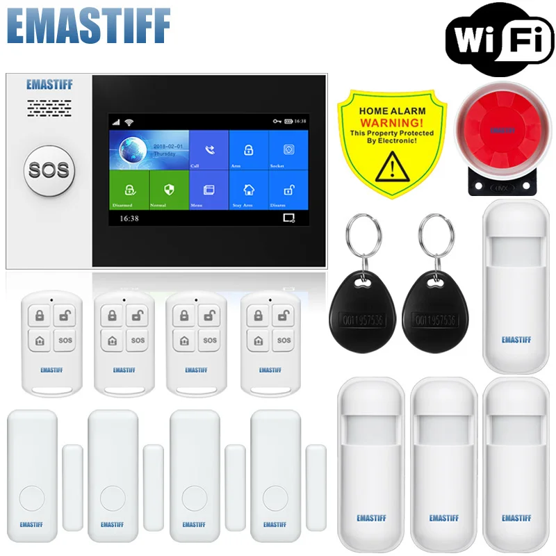 Wi-Fi GSM умная сигнализация домашний охранный комплект 4,3 дюймовый сенсорный экран приложение дистанционное управление RFID рука разоружение