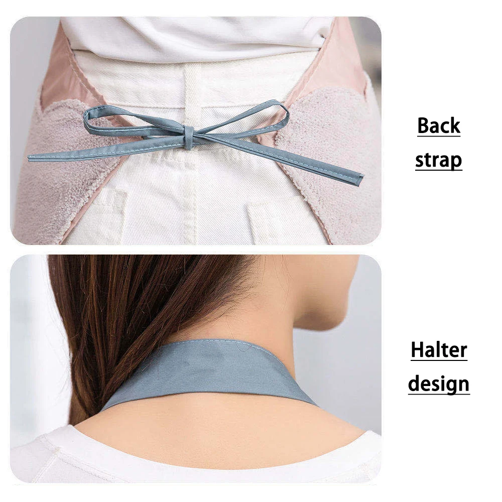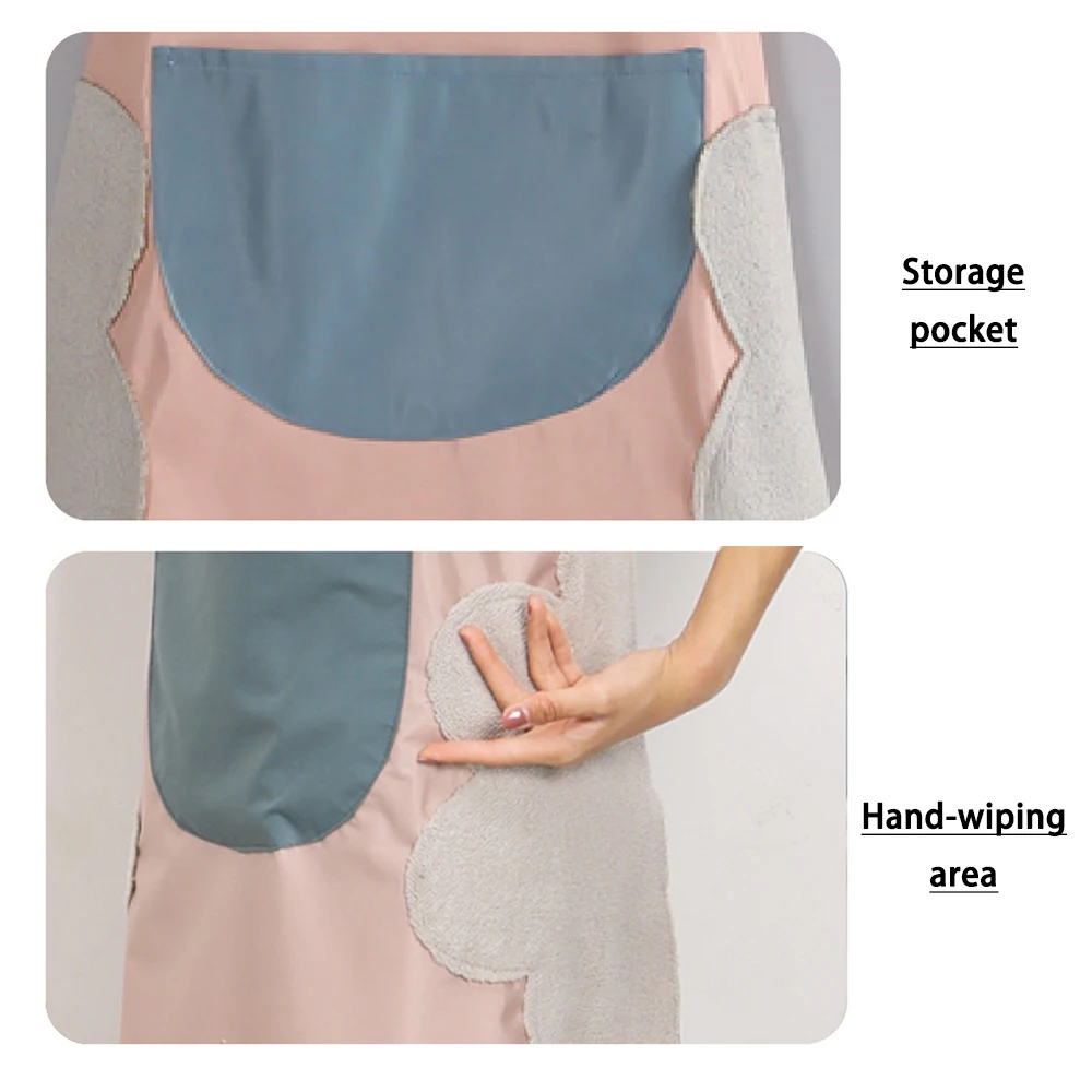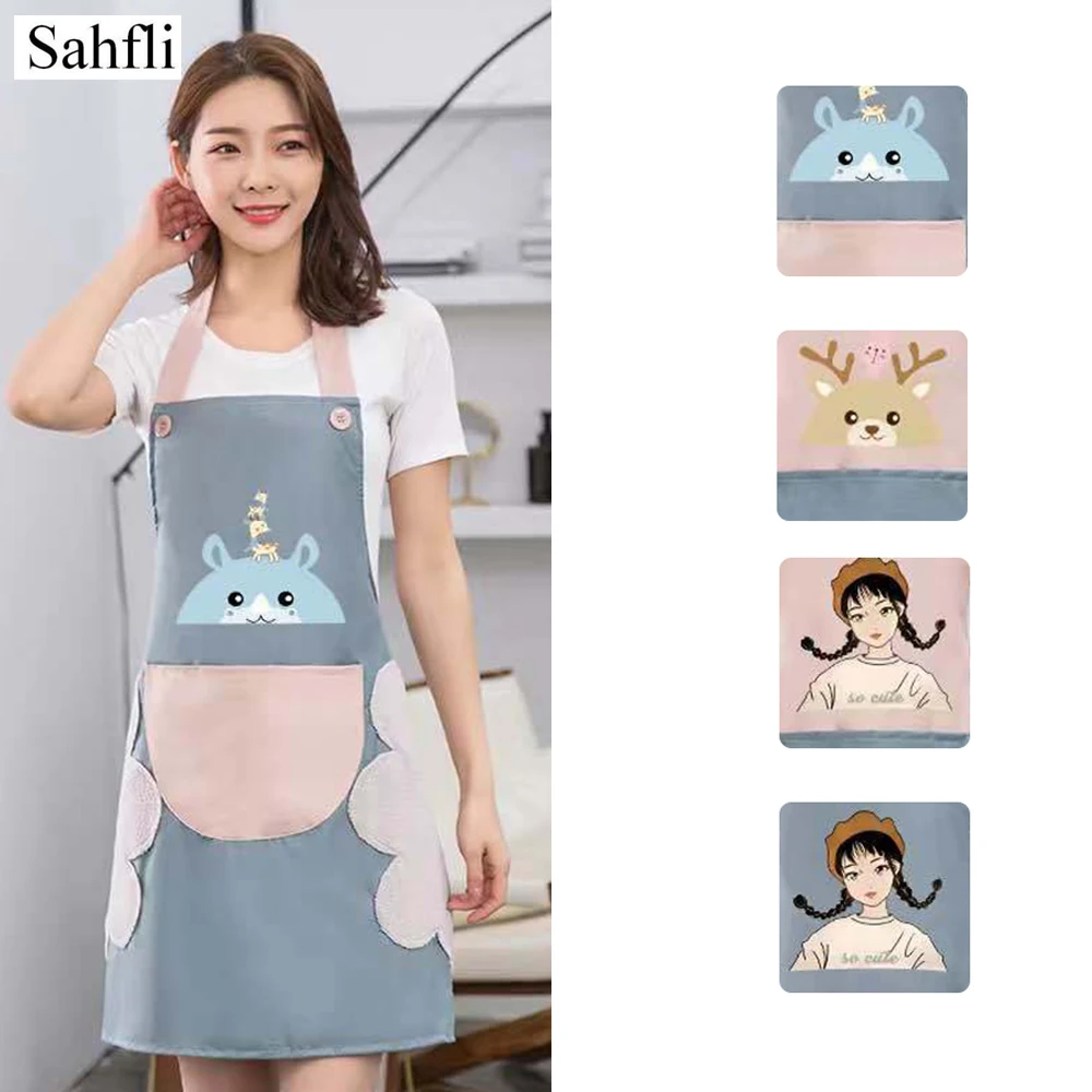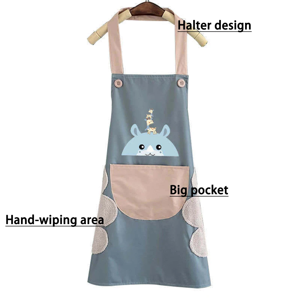 Женский фартук, милый мультяшный домашний кухонный фартук, регулируемые ремешки, водонепроницаемые, большие карманы, Коралловое бархатное полотенце для рук, без рукавов