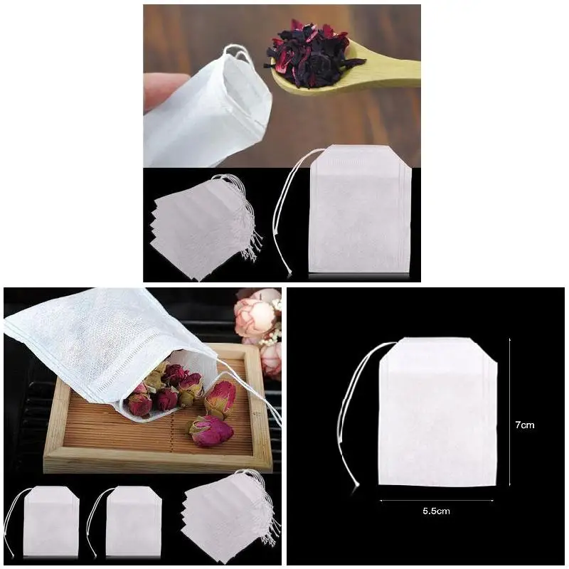 Чай в пакетиках 100 шт Одноразовые пустые чайные пакетики 5,5x7 см бумажные пакетики для чая со шнурком Здоровый чайный фильтр