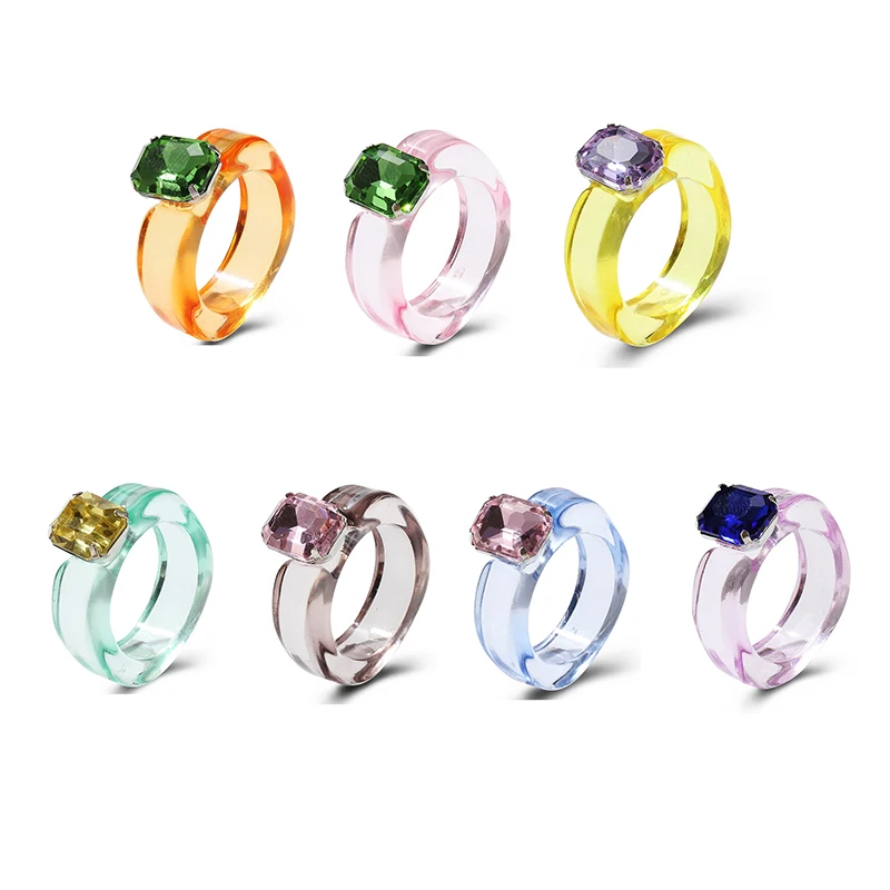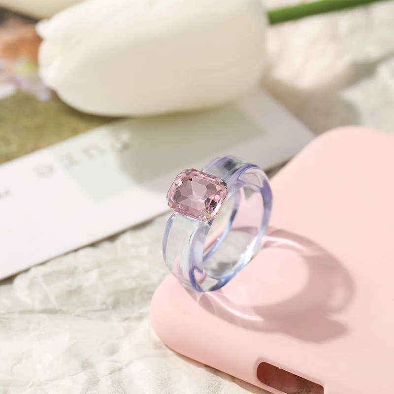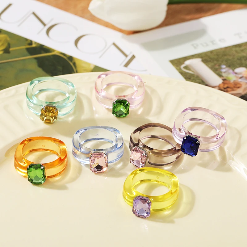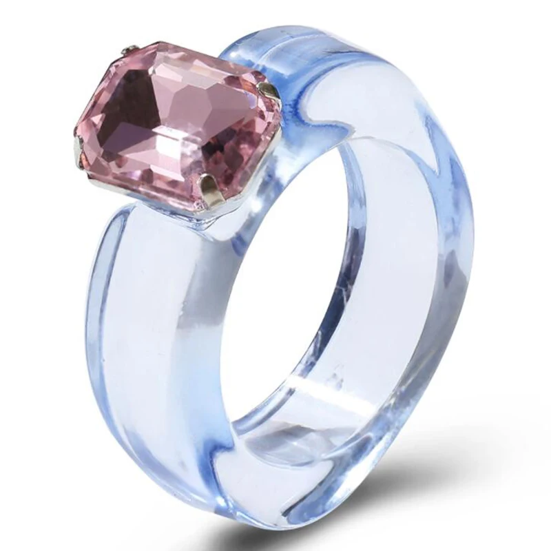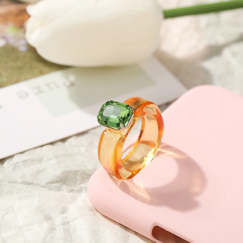 Карамельный цвет инкрустированные Стразы с украшением в виде кристаллов Совместные Кольца готический геометрической формы смола кольцо на палец для женщин, Aesthatic, ювелирное изделие, подарок