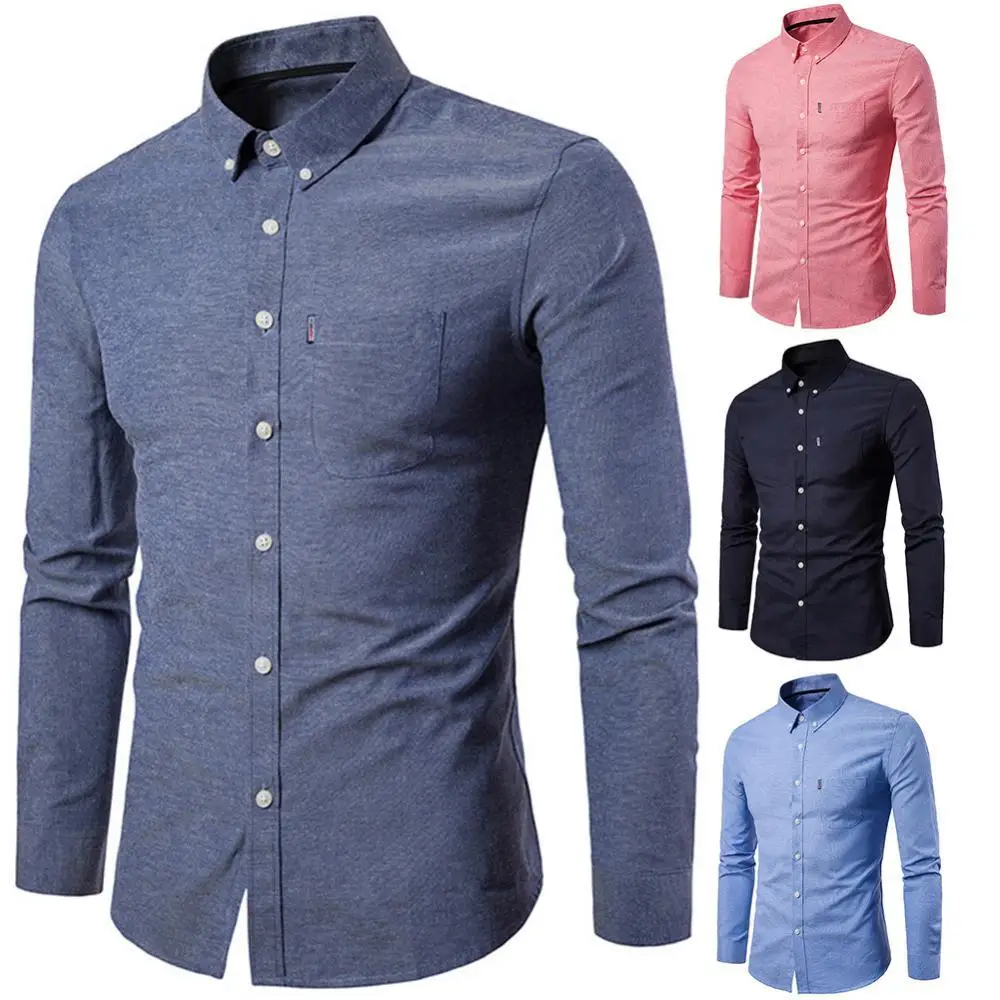 Весенняя формальная рубашка с длинным рукавом для мужчин, однотонная тонкая Базовая рубашка с отложным воротником, деловая рубашка