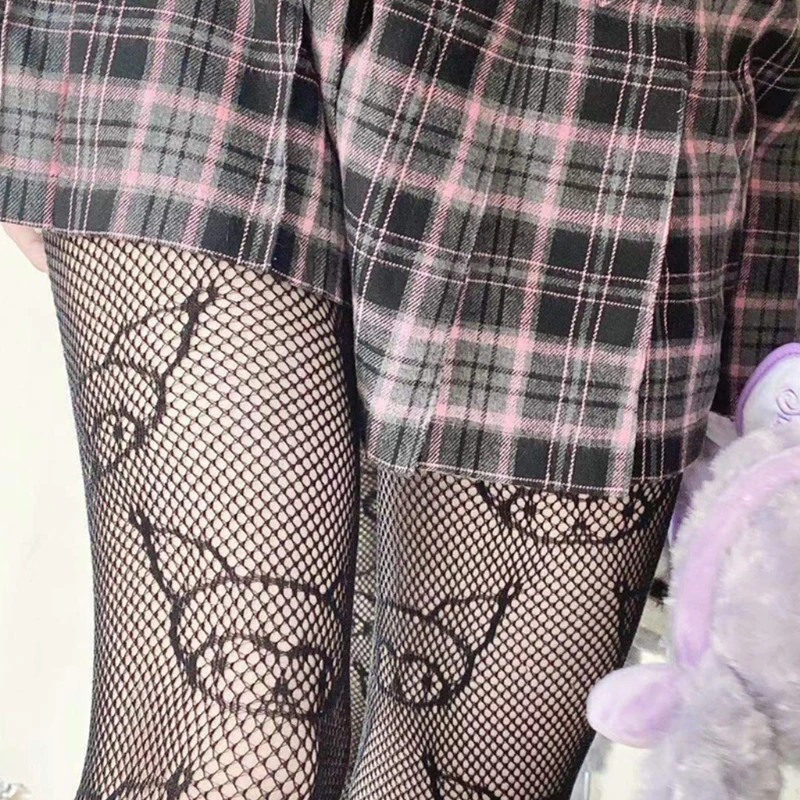 Женские колготки в стиле японского аниме Лолита, жаккардовые колготки с рисунком дьявола, в готическом стиле, сетчатые, с вырезами, сетчатые чулки