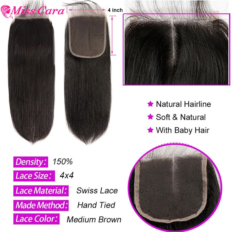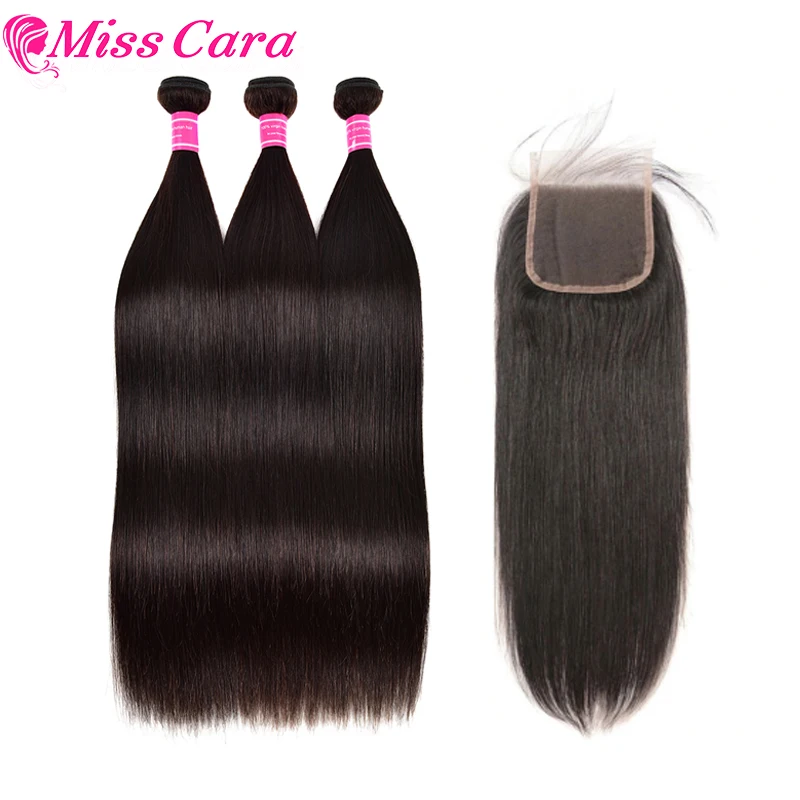 Remy волосы для наращивания 3 пряди с кружевной застежкой перуанские прямые пряди с закрытием Miss Cara человеческие волосы с пряди