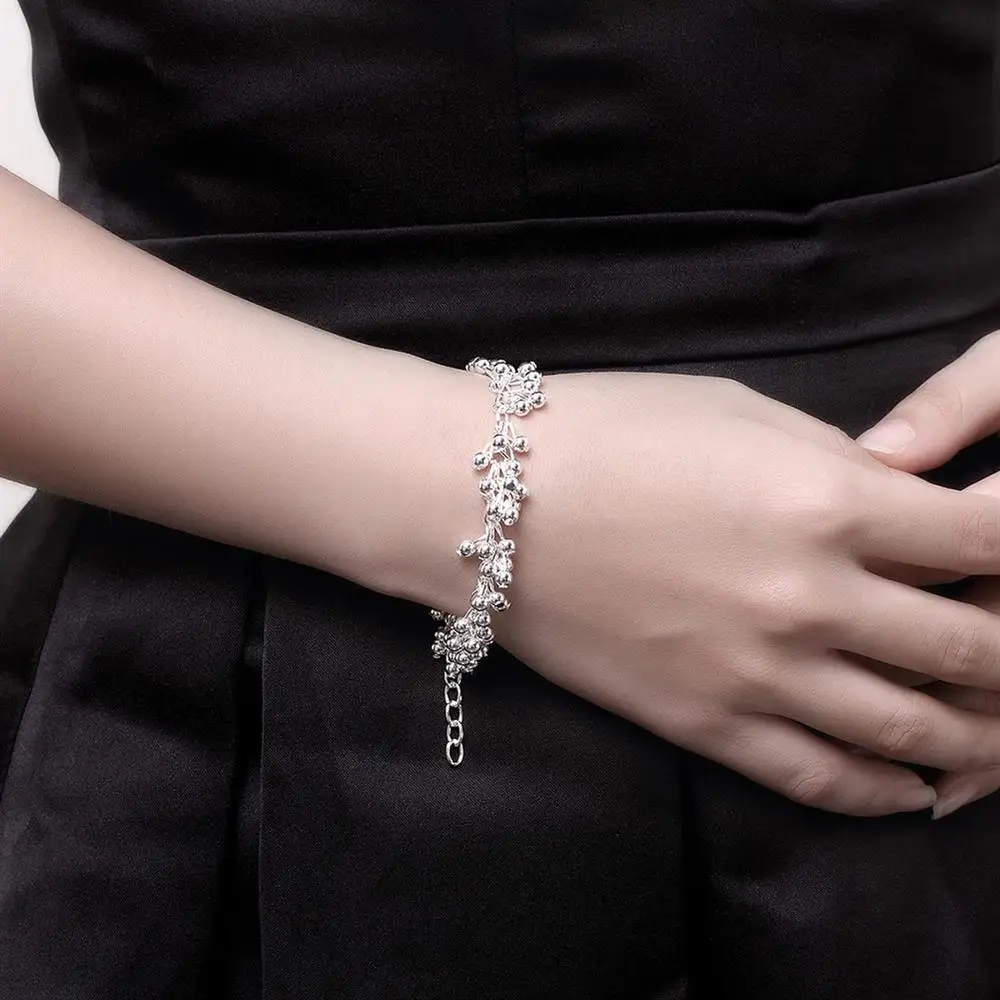 Женский браслет из серебра 925 пробы, с гладкими бусинами винограда