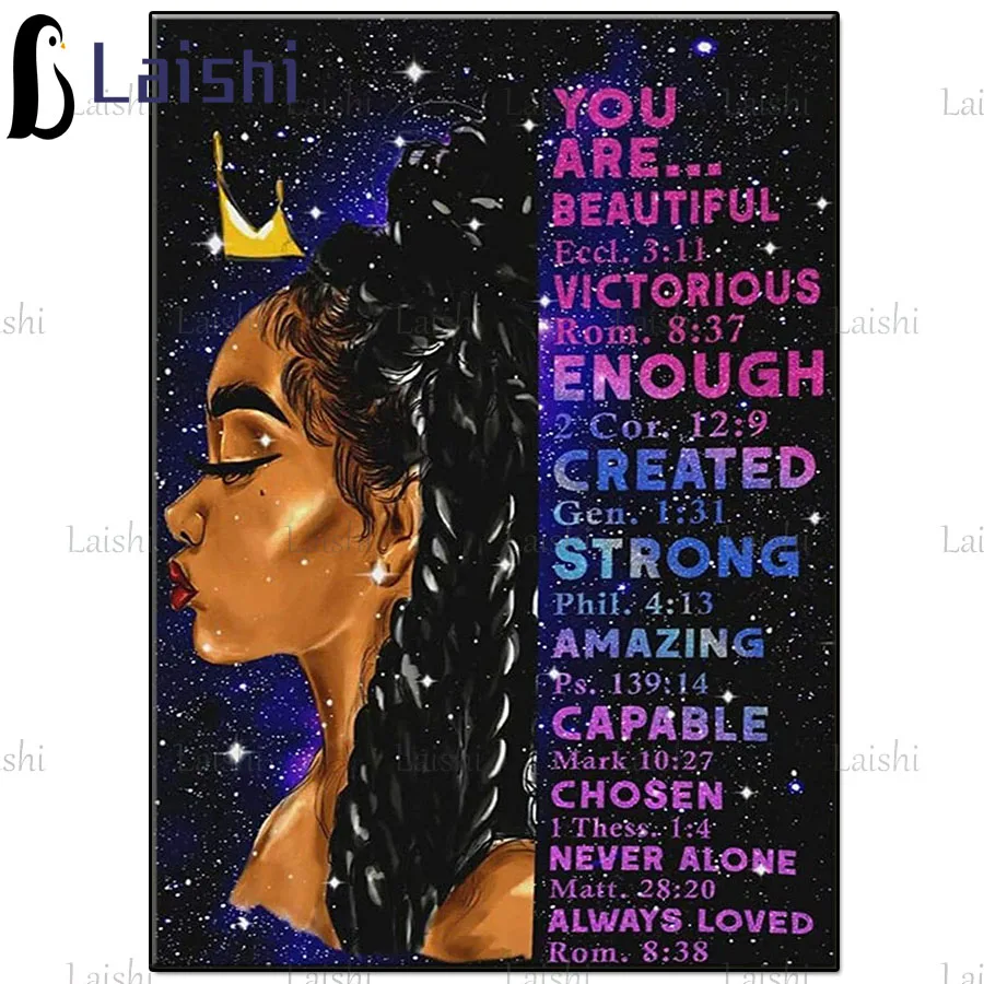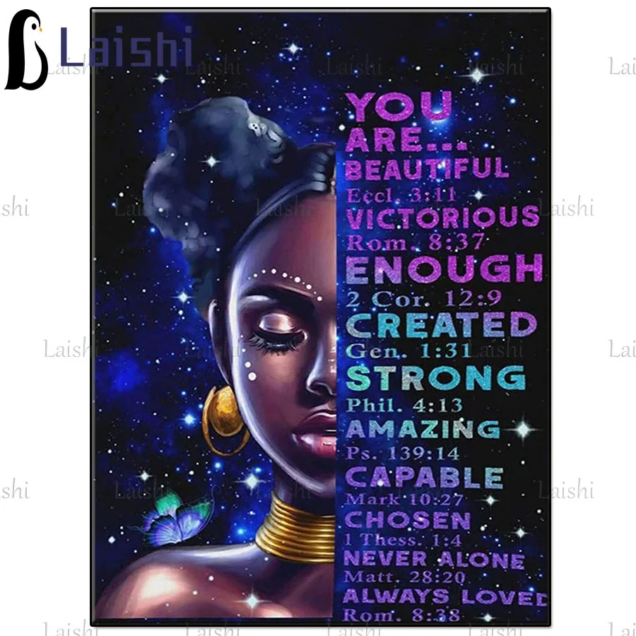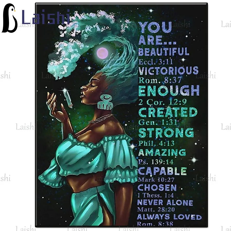 Алмазная живопись, африканская американская девушка, признание, артефакт, волшебная девушка, полноразмерная квадратная круглая Алмазная мозаика, украшение для дома