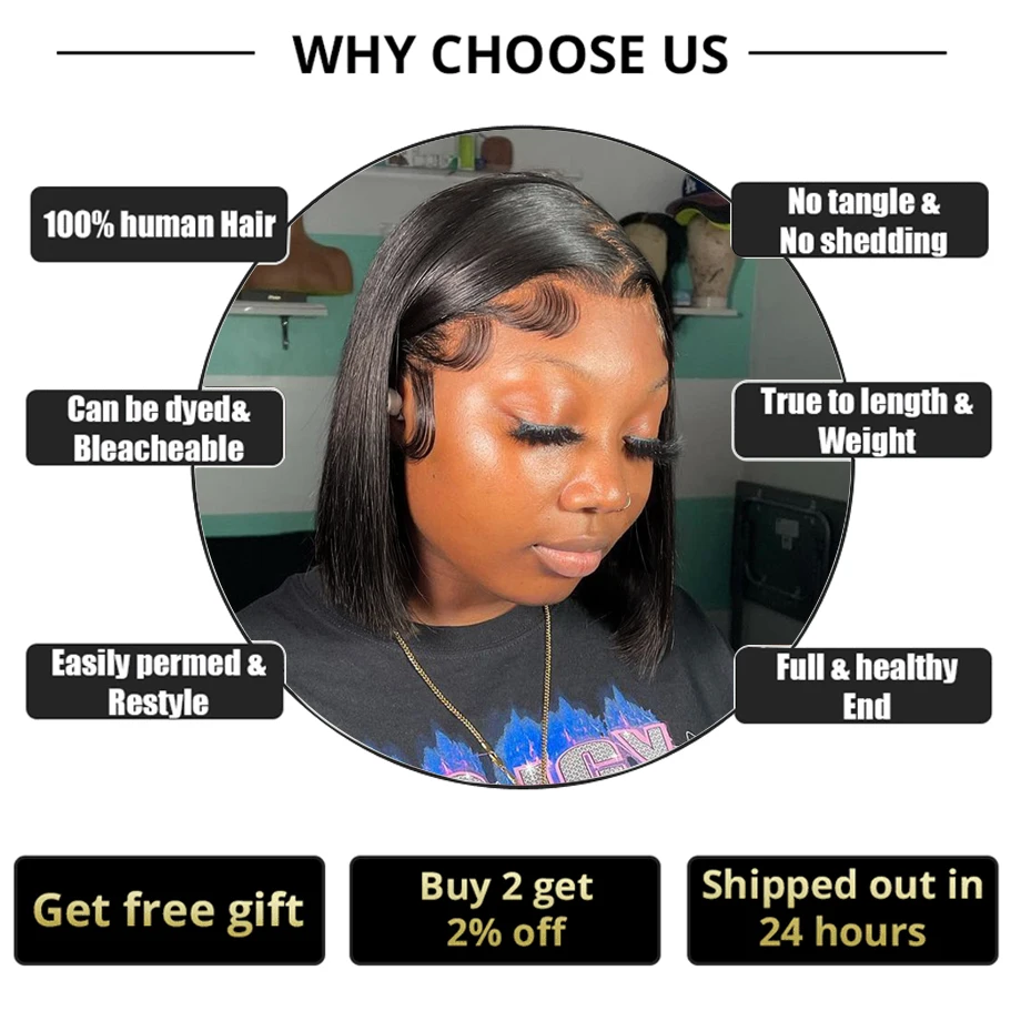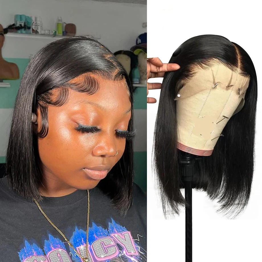 Парик с прямыми кружевными передними волосами, парик Боб, парики из человеческих волос на сетке спереди для чернокожих женщин, бразильские предварительно выщипанные T-образные короткие парики