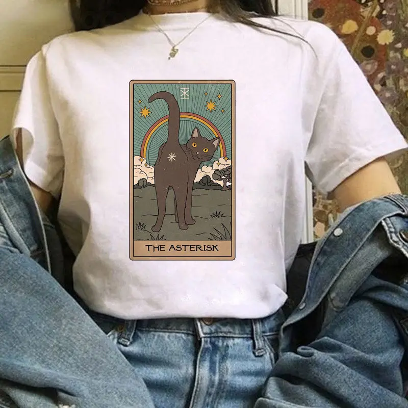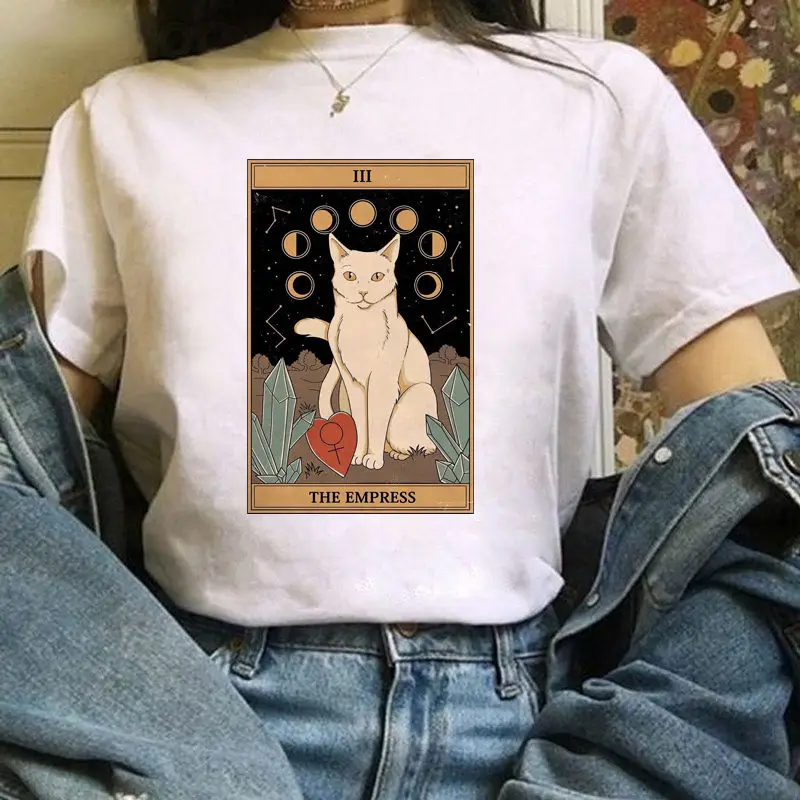 Топы с принтом Таро-кота, летняя женская футболка, женская одежда с...