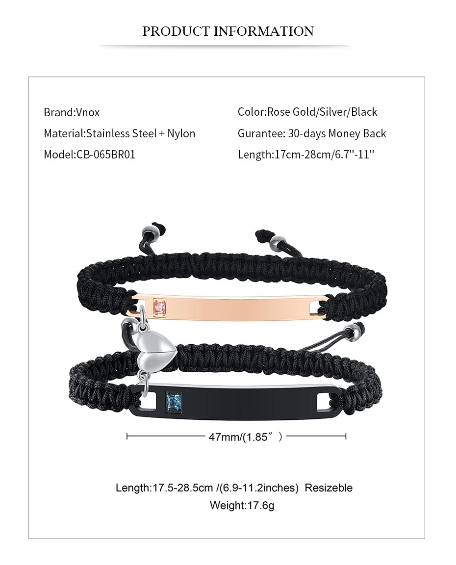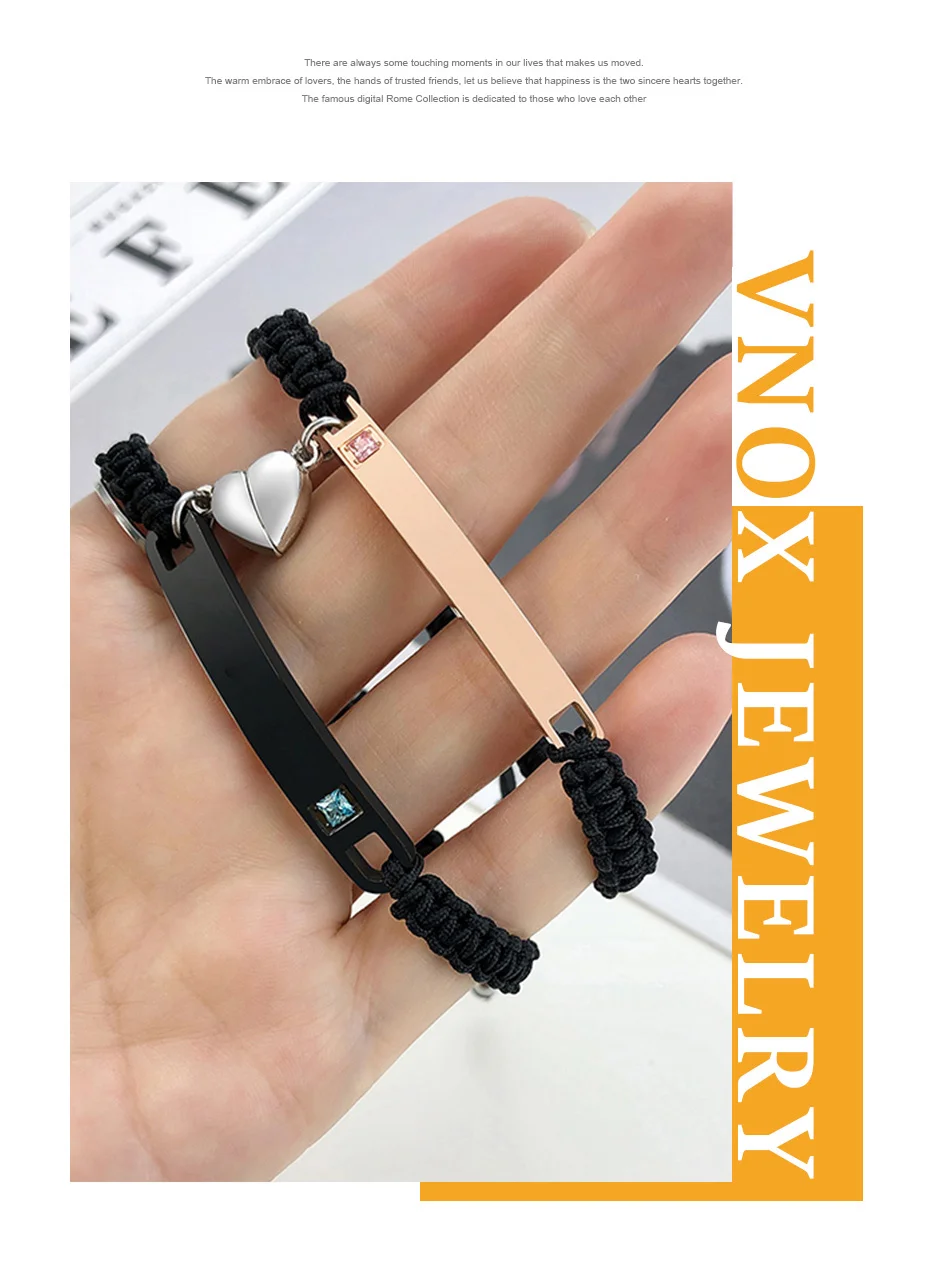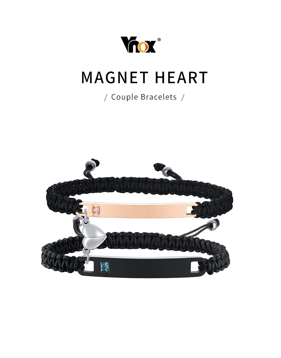 Vnox привлекательное сердце его и ее веревка ручной работы Плетеные Парные браслеты для женщин и мужчин, индивидуальный комплект подарков для влюбленных