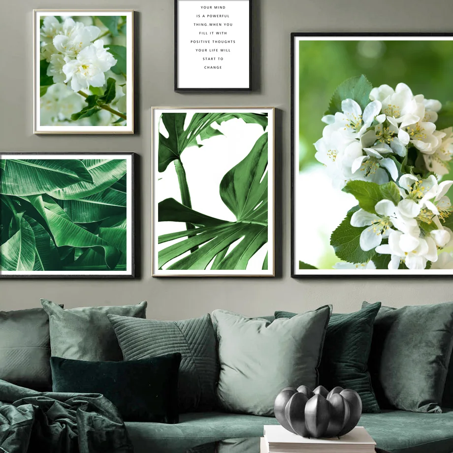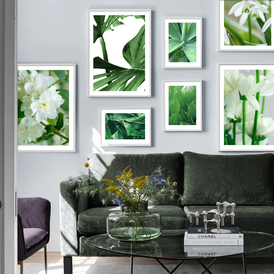 Настенная картина с изображением зеленых растений, монстера, кактус...