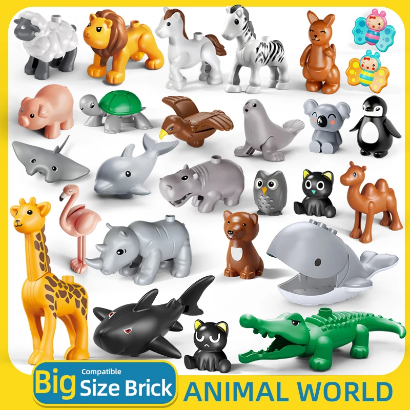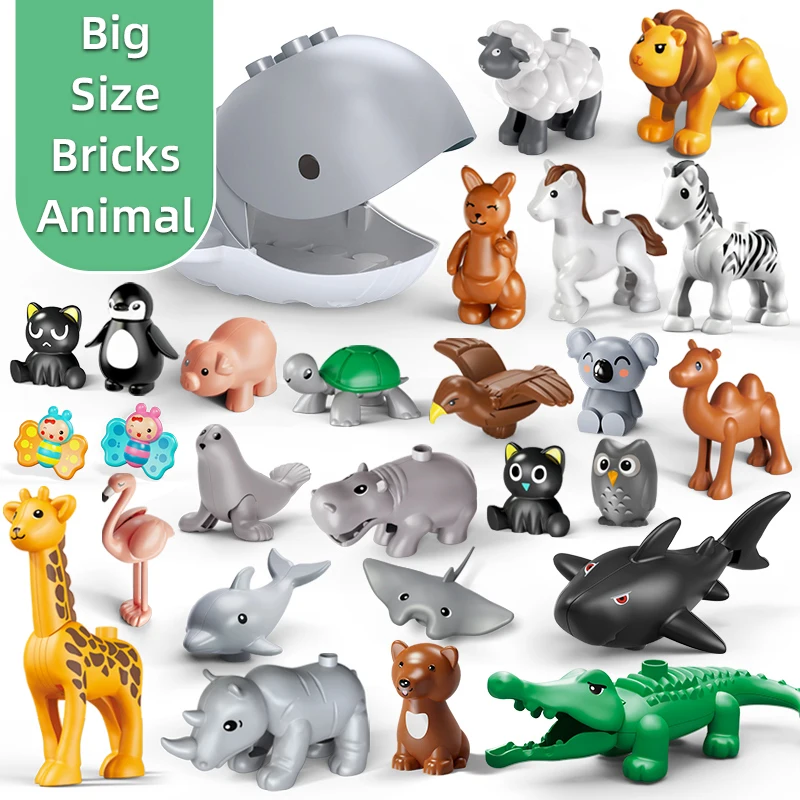 Конструктор сделай сам большого размера, аксессуары для животных, фигурки, Лев, Кит, кошка, собака, свинья, Сова, Совместимые Кирпичи, зоопарк, игрушки для детей, подарки