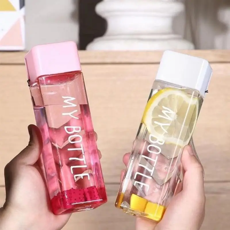 500ml прозрачные квадратные Пластик матовый водная напольная чашка холодного сока водные виды спорта чашка с Портативный молока веревка Бутылки для воды Кубок