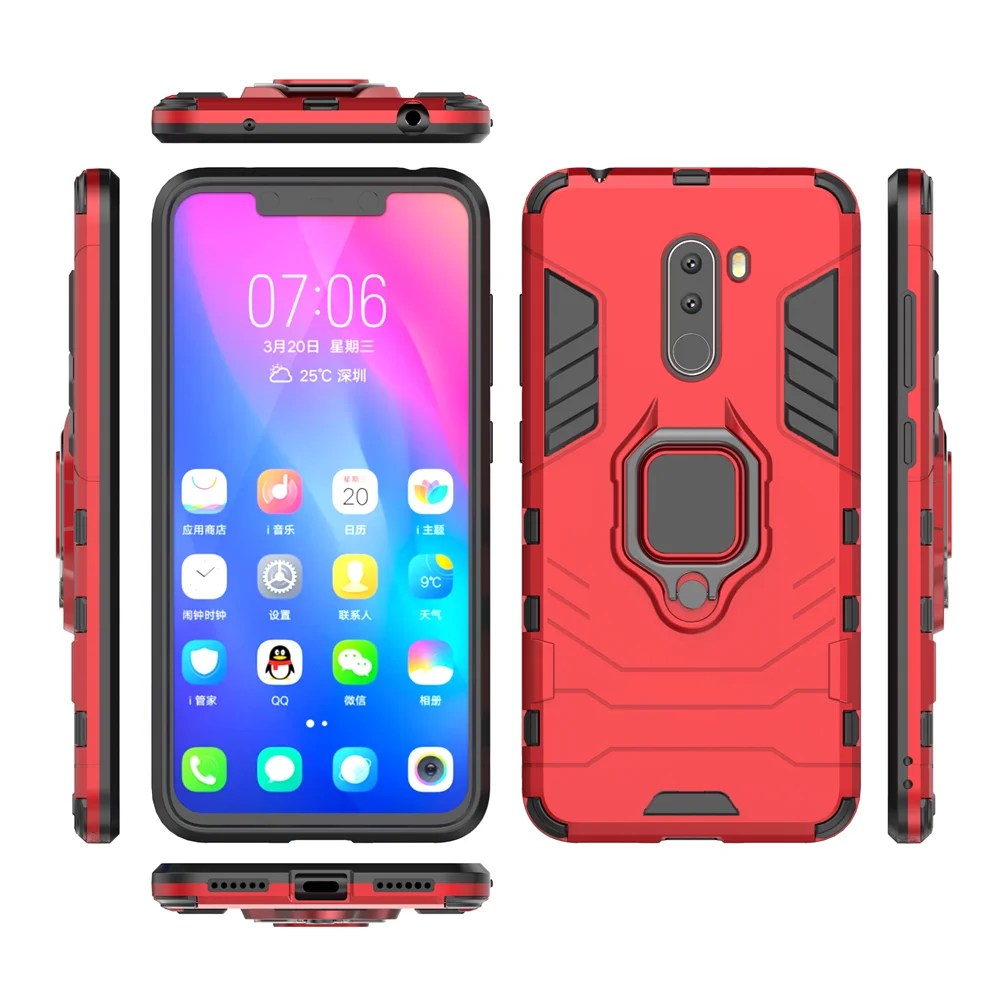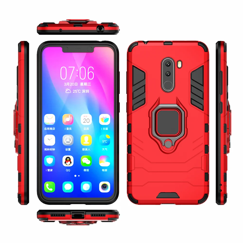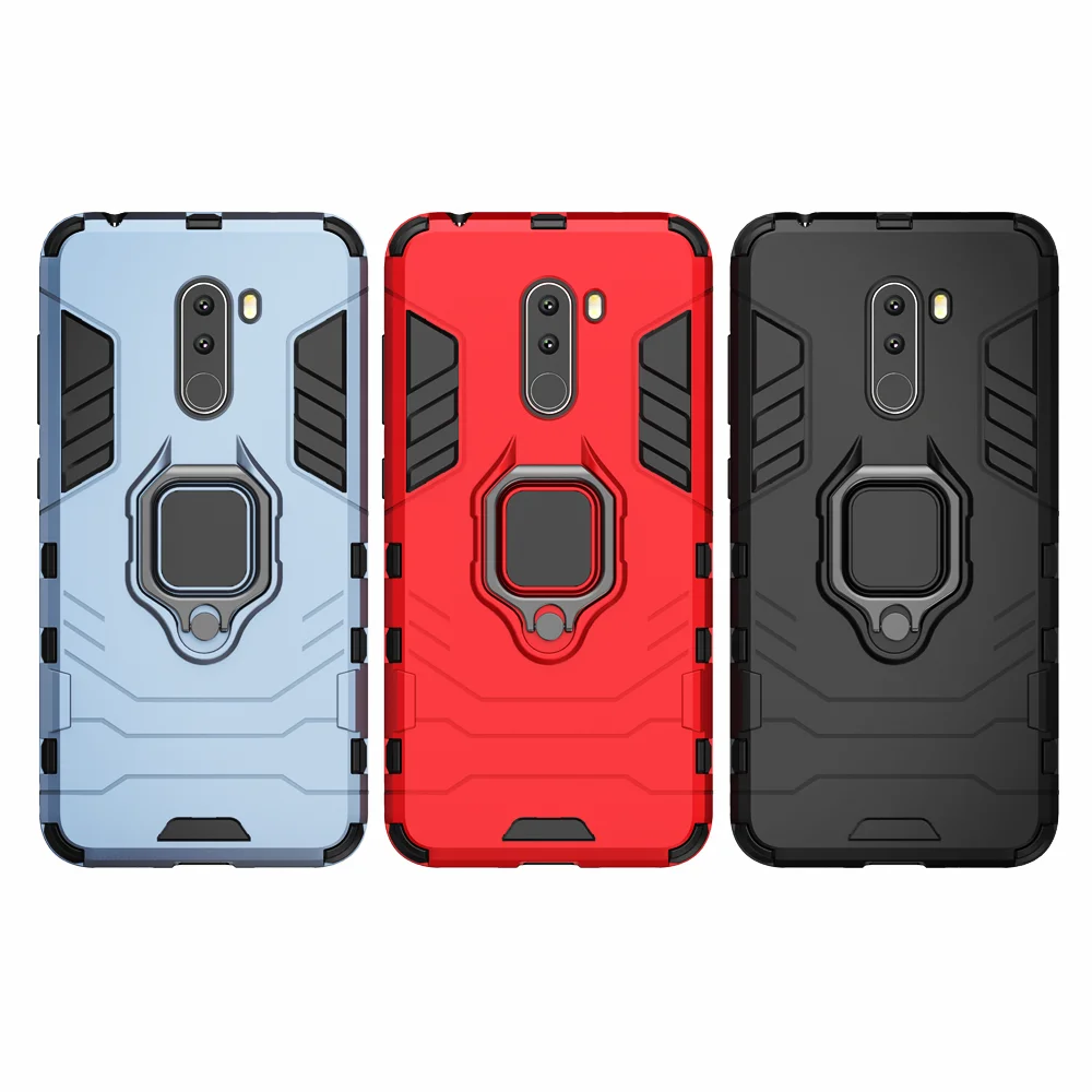Чехол-держатель для телефона с кольцом на палец для POCOPhone F1 Магнитный бронированный противоударный чехол для телефона Xiaomi POCO F 1 Pocophone F1