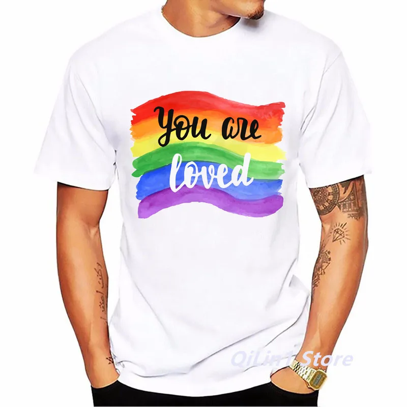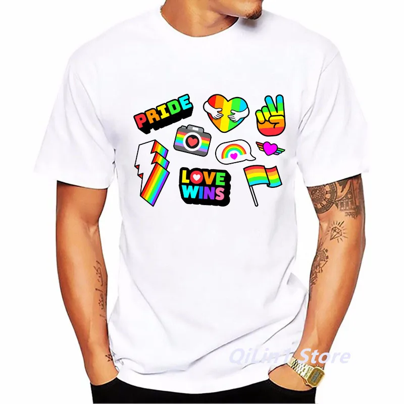 Радуга, фестиваль Прайд ЛГБТ футболка мужские футболки надпись Love Is Love Wins со слоганом Графические футболки мужской летний топ мужские белые топы с коротким рукавом