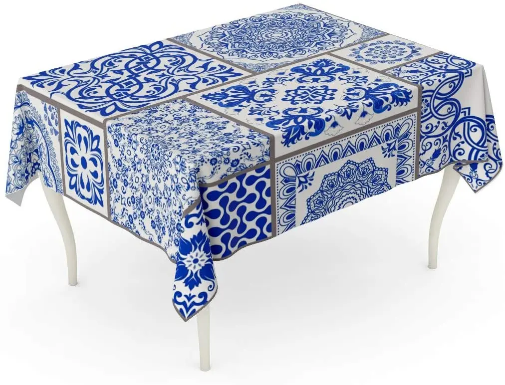 Лоскутные викторианские мотивы майолика керамика сине-белая Azulejo оригинальная традиционная португальская испанская Цветочная скатерть