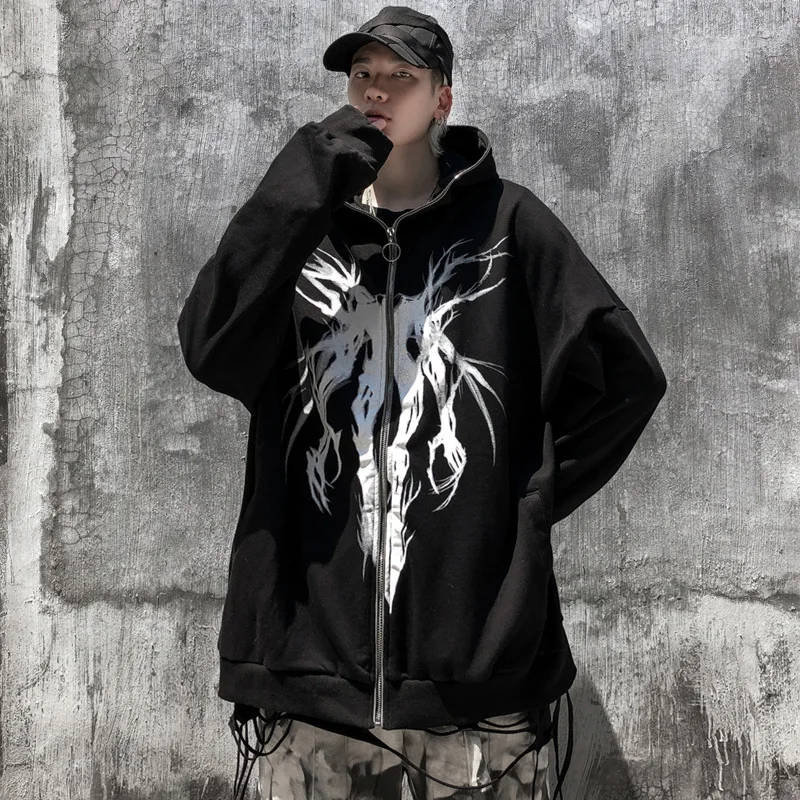 Толстовка с капюшоном на молнии для мужчин и женщин, темная уличная...