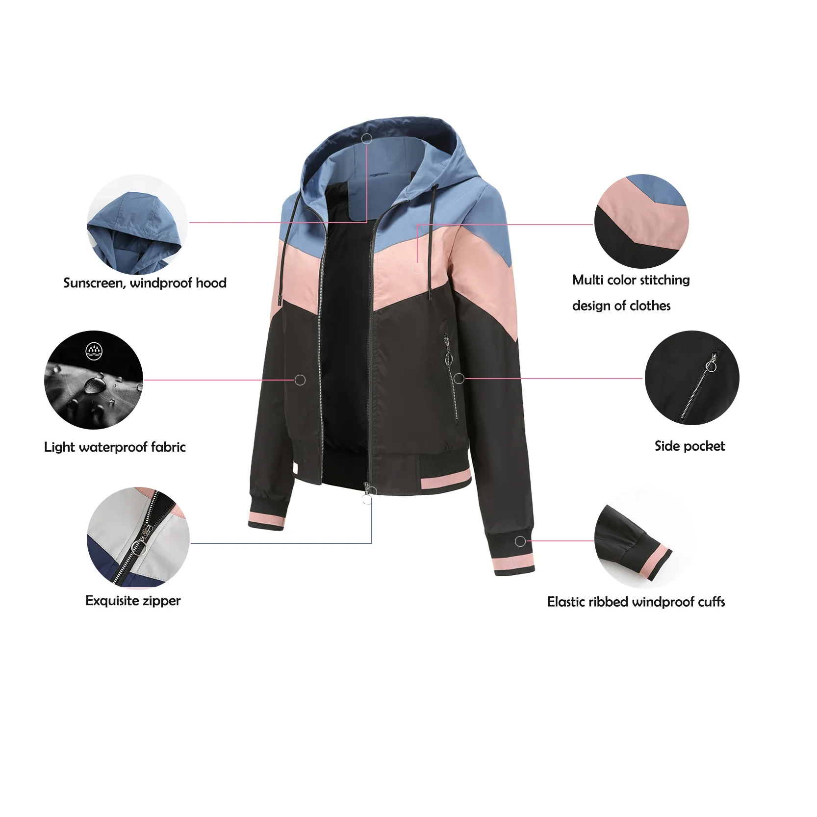 НОВАЯ тонкая ветровка для девушек, Женская куртка с капюшоном на весну и осень, Женский уличный дождевик, куртка на шнуровке с подбором цветов