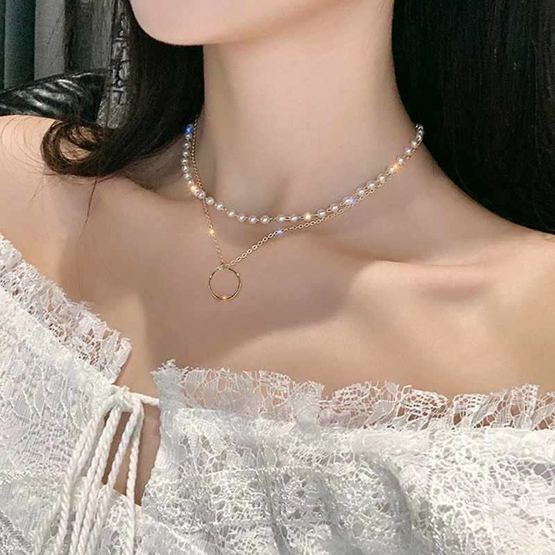 LATS 2021 Новая Мода Kpop жемчужное ожерелье-чокер для женщин Милое Двухслойное круглое ожерелье с подвеской ювелирные изделия подарок девушке