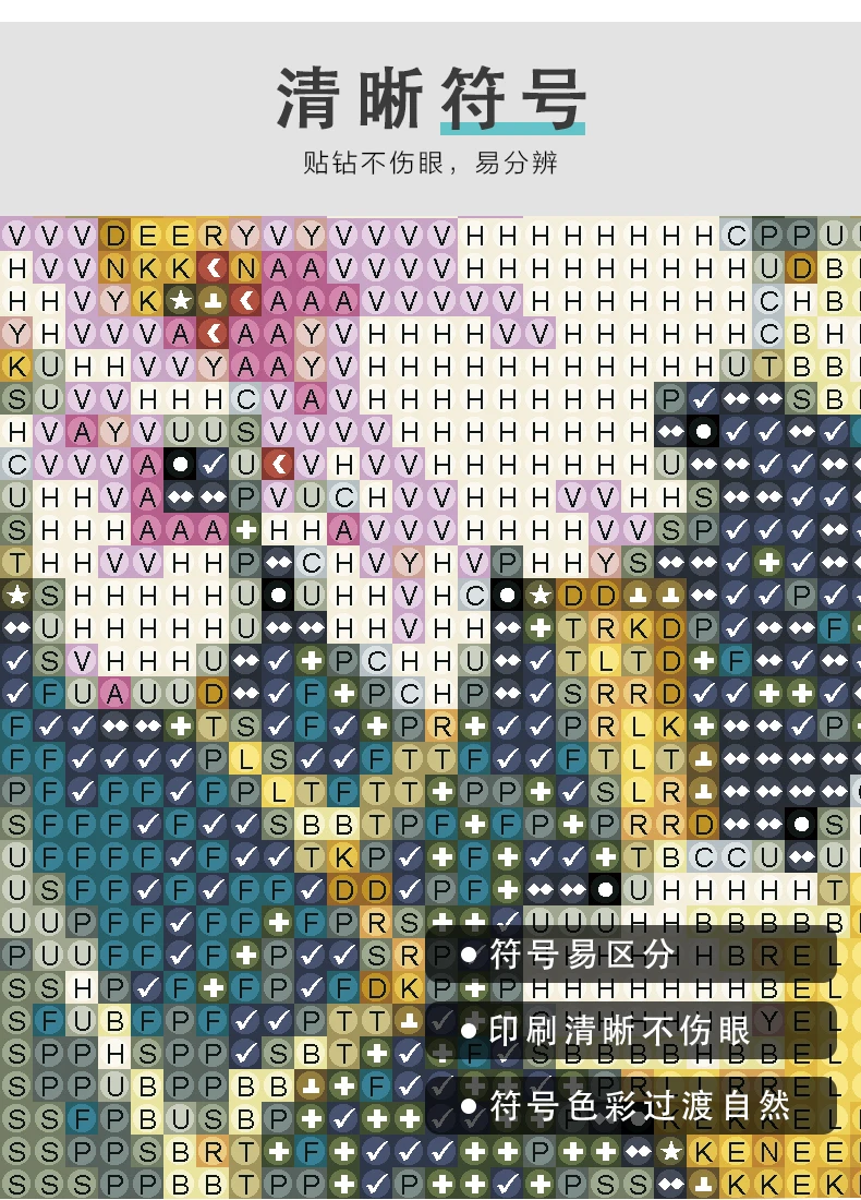 Символ холста ясен и аккуратно расположен в необъективной сетке, не повреждает глаза