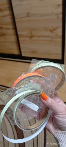 Прийшло в Полтаву приблизно за 3 тижні. Ширина 1см, давнина 1м. Стрічка на клейкій основі. Досить яскрава в темряві при умові, якщо до цього добре зарядитися світлом.