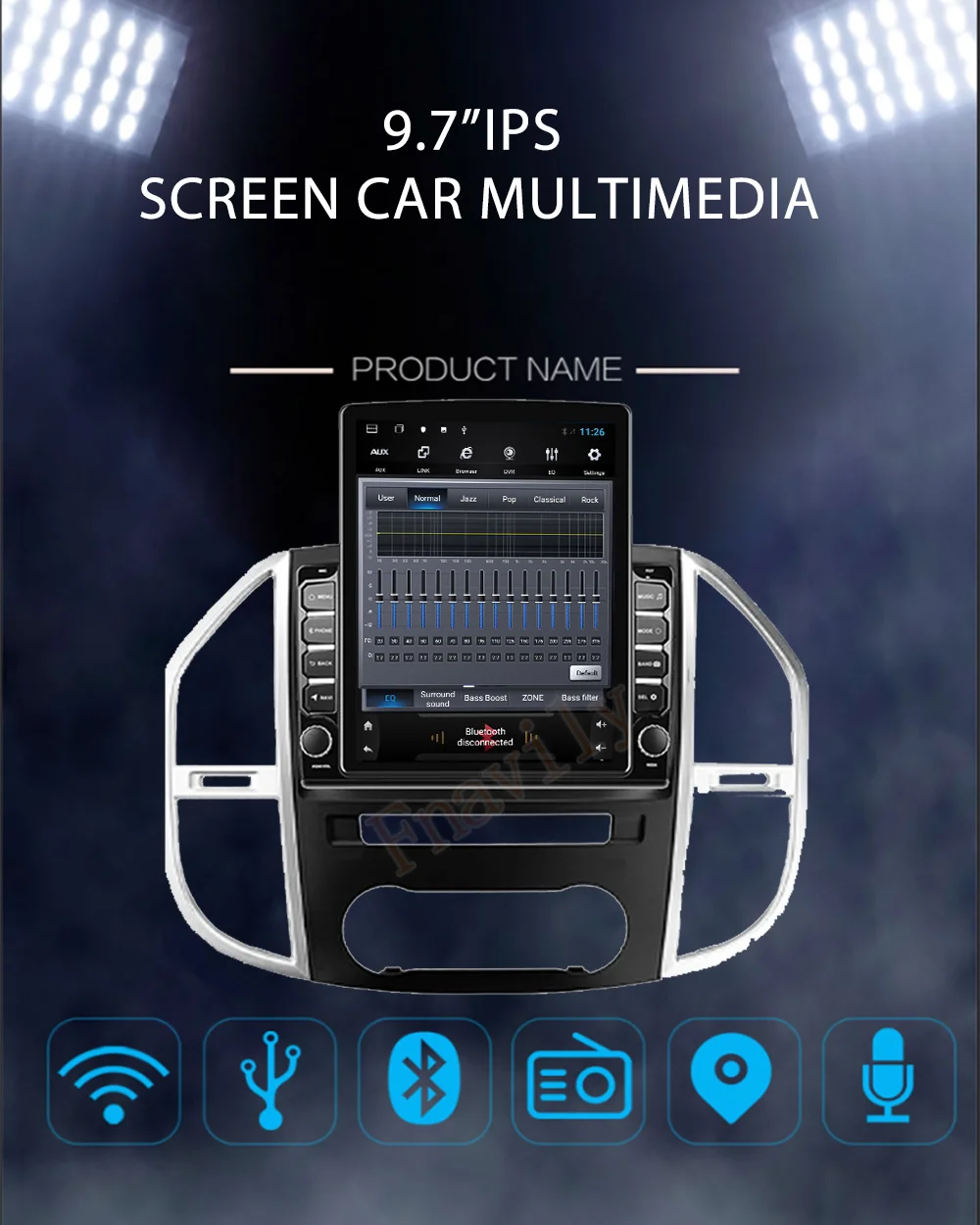 Автомагнитола Fnavily Android 10 для Mercedes Benz Vito, мультимедийный проигрыватель для автомобиля, GPS-навигация, вертикальный экран, стиль Теслы 9,7 дюйма