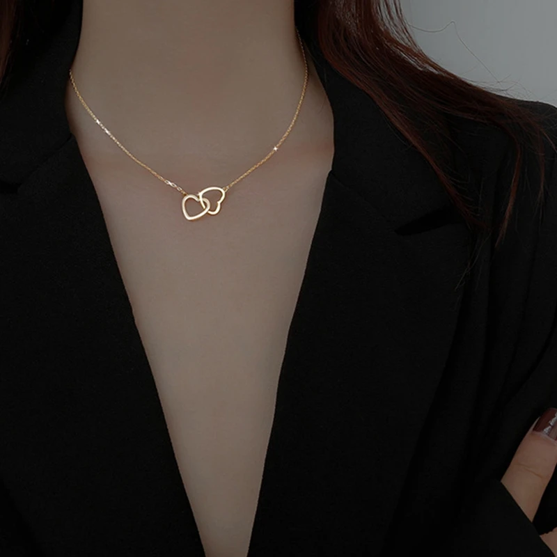 Женская цепочка на шею Kpop, подвеска золотого и серебряного цвета с двойным сердцем из сплава, ожерелья для девушек, модные ювелирные изделия