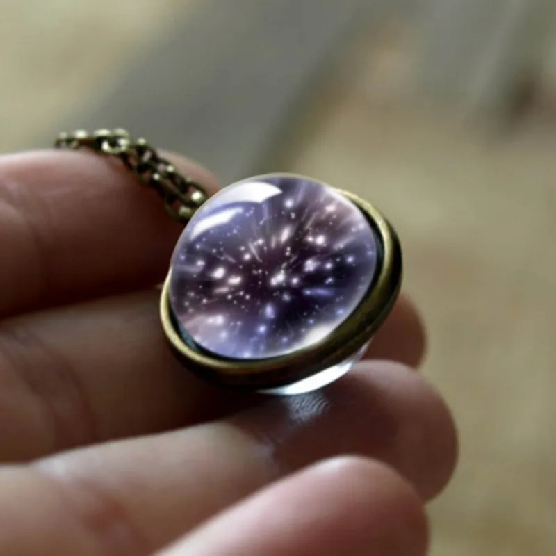 Уникальный кулон в виде туманности и галактики, двухсторонняя стеклянная сфера, солнечная система, универсальное ожерелье со звездами, лучший подарок для влюбленных, друзей