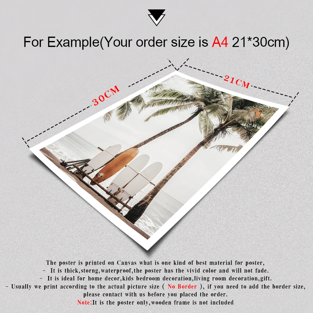 Художественный плакат с цифровой печатью пальмового дерева, Настенный декор, доски для серфинга на песчаном пляже, холст, художественная фотография, декор для комнаты