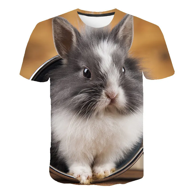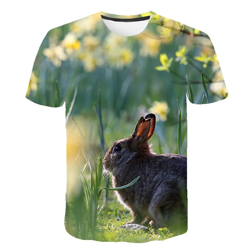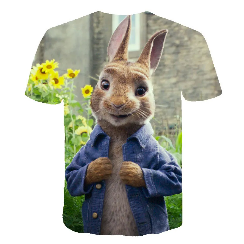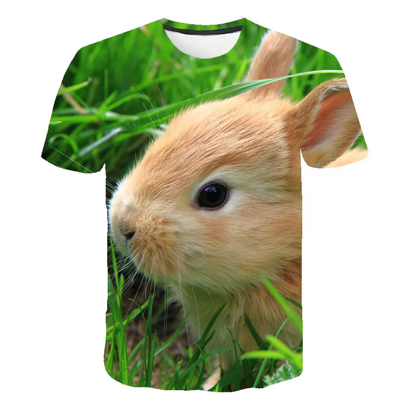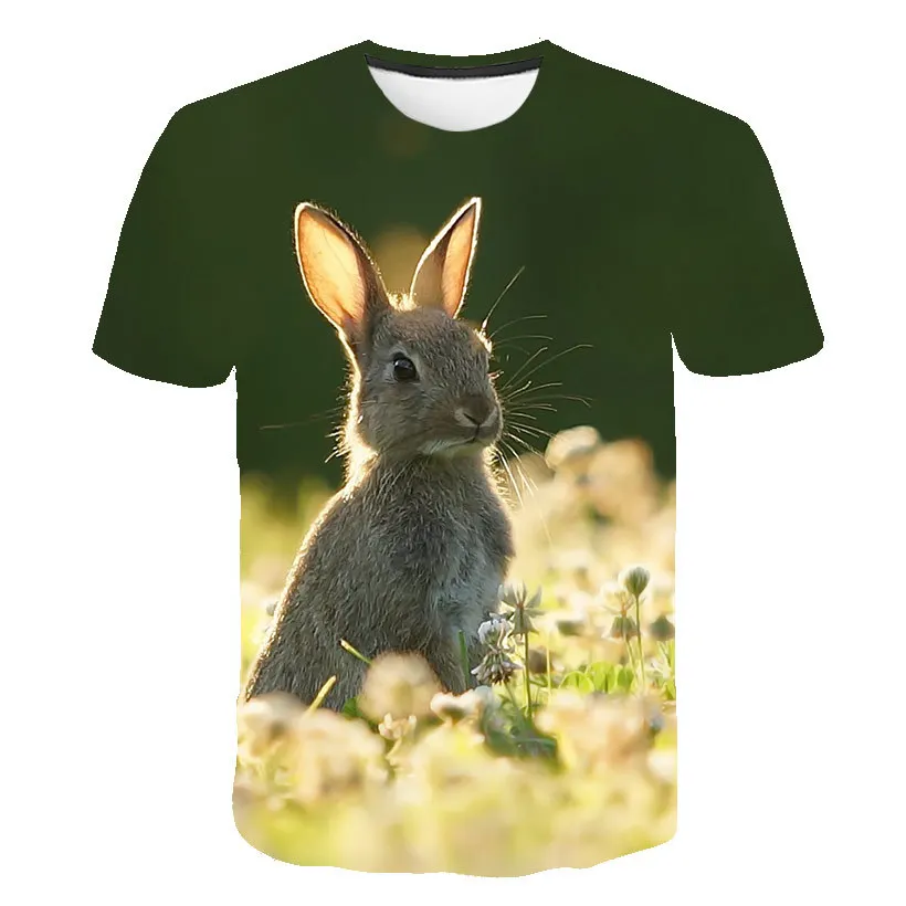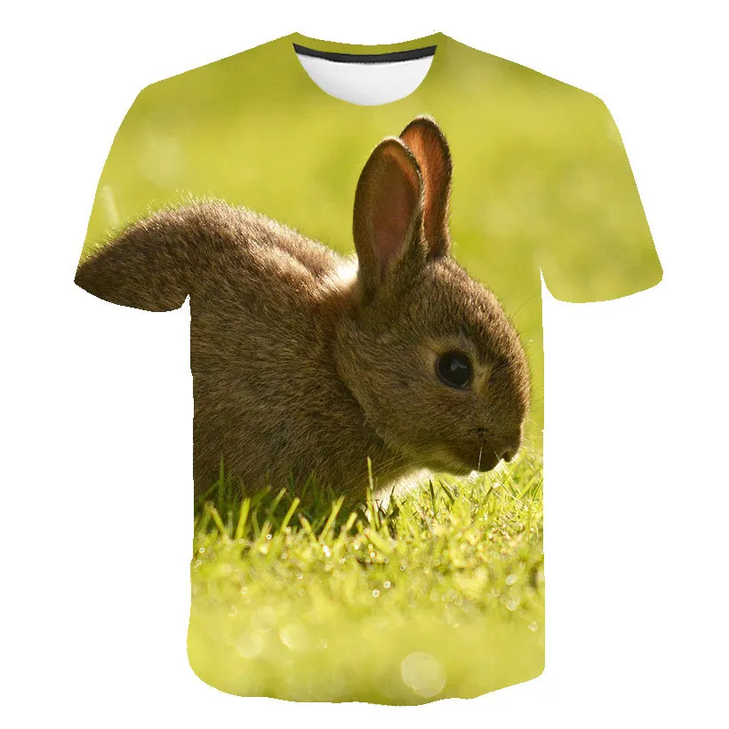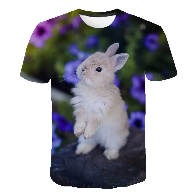Футболка для девочек, с милым принтом кроликов, детская одежда, футболка с рисунком аниме, детская одежда, футболка для мальчиков