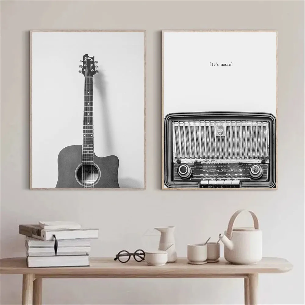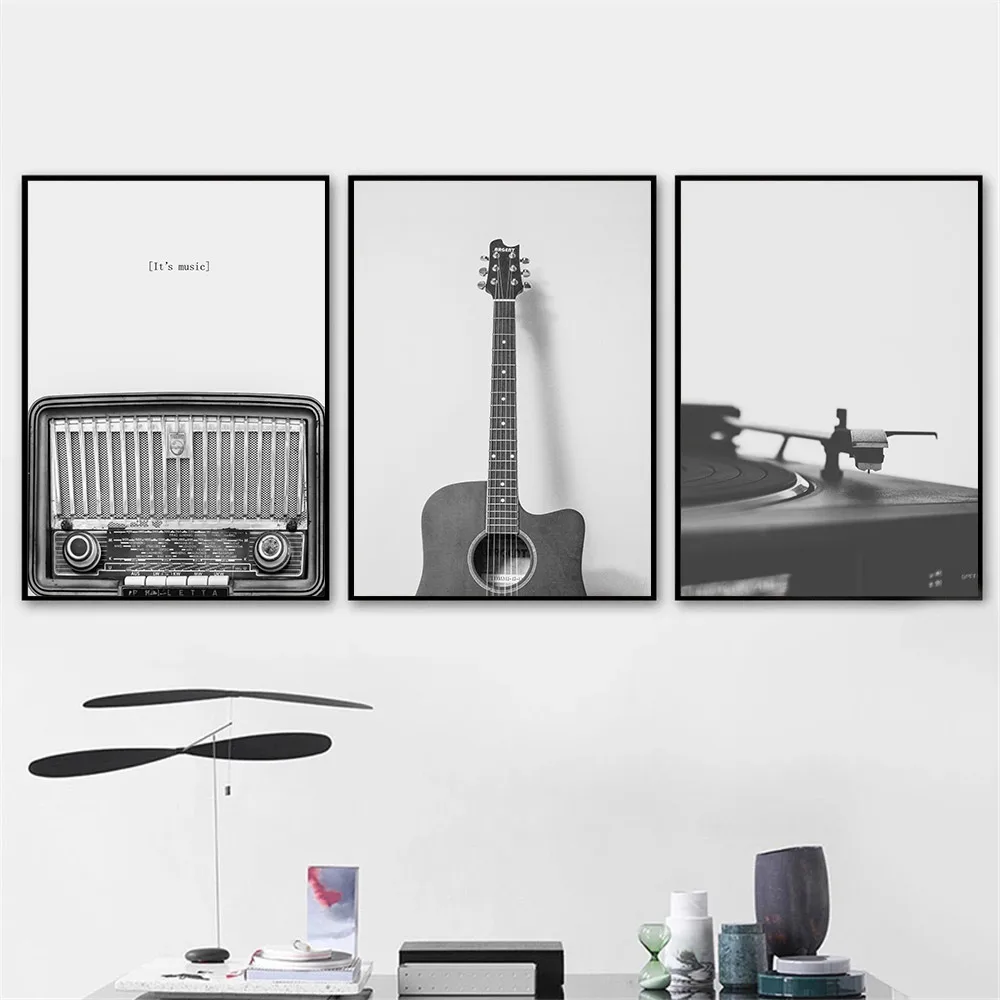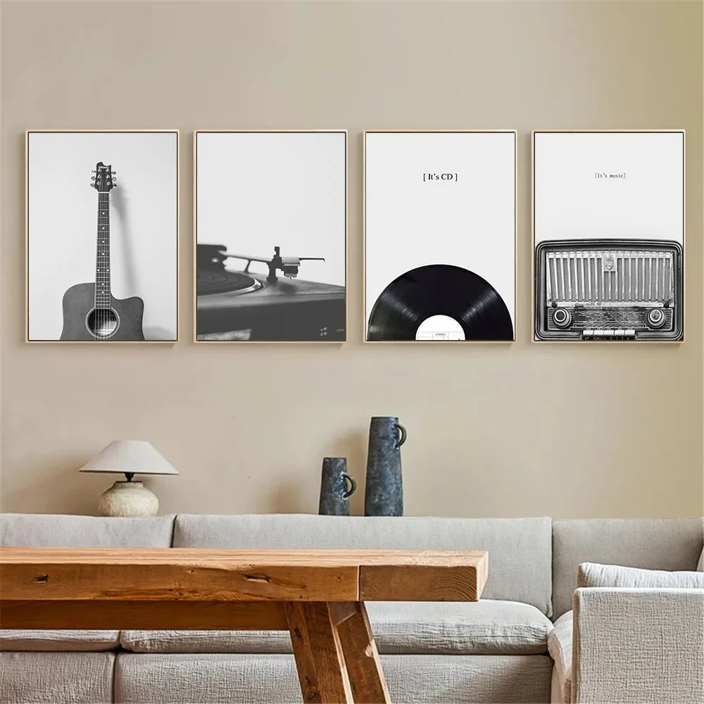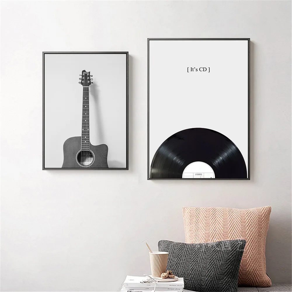Настенная живопись с виниловой пластиной, постер на гитару, CD, музыкальный холст, печать, черно-белые настенные картины, Современная гостиная, домашний декор