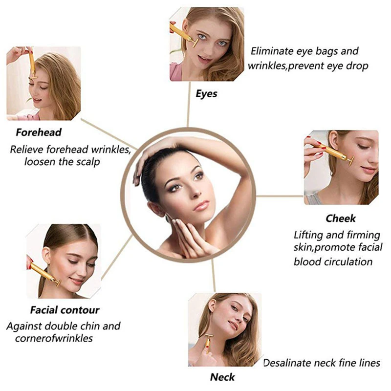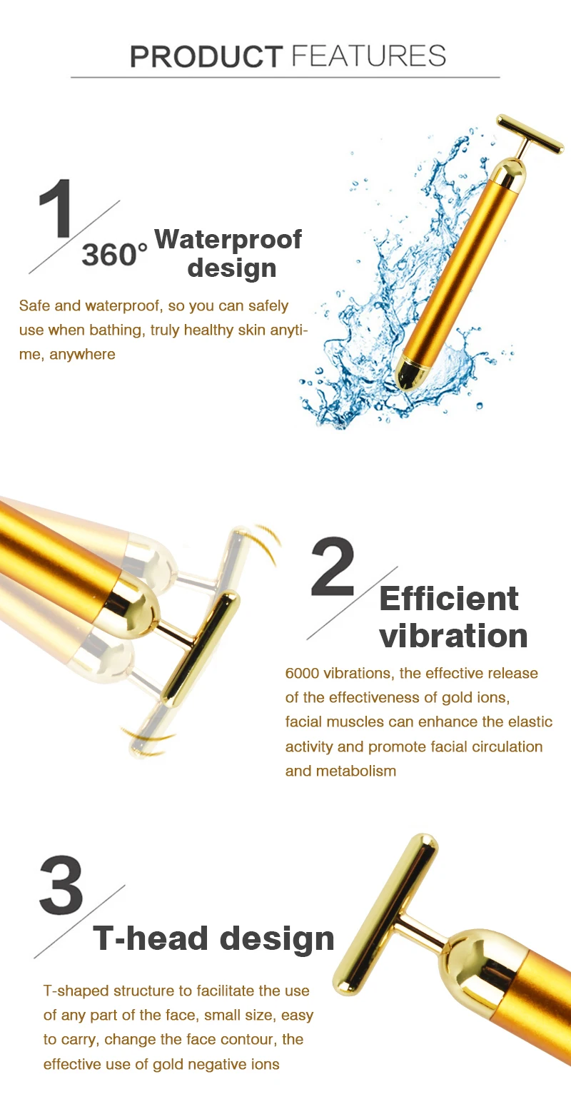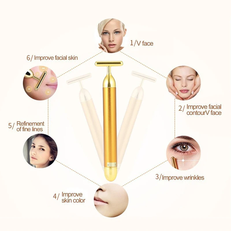 24K Gold Красота бар для похудения уход за кожей лица массаж ролик Вибрационный Массажер палка Лифт уход за кожей, Т-образные, подтягивающая морщинка инструмент