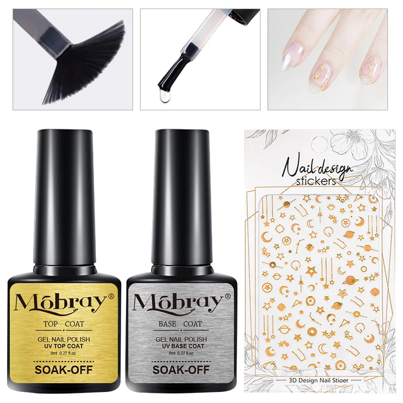 Топовое и Базовое покрытие Mobray, Гель-лак с наклейкой, блестящий герметик, отмачиваемый, укрепляющий стойкий Гель-лак для маникюра и нейл-арта, праймер