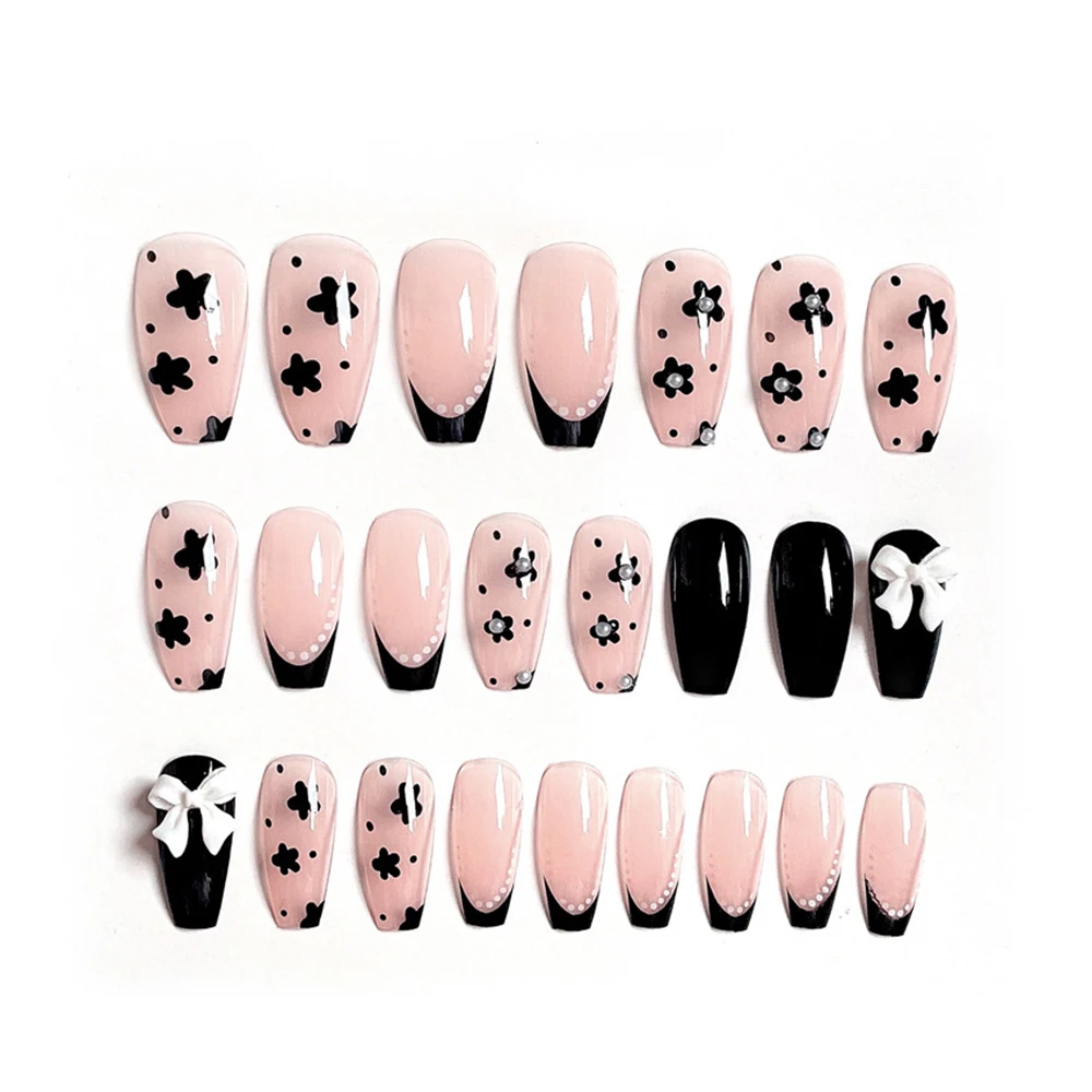 24 шт, полного покрытия, накладные ногти носки Длинные гроб накладные ногти искусственные Маникюрный Инструмент с бантом блестящие украшения для ногтей Красота