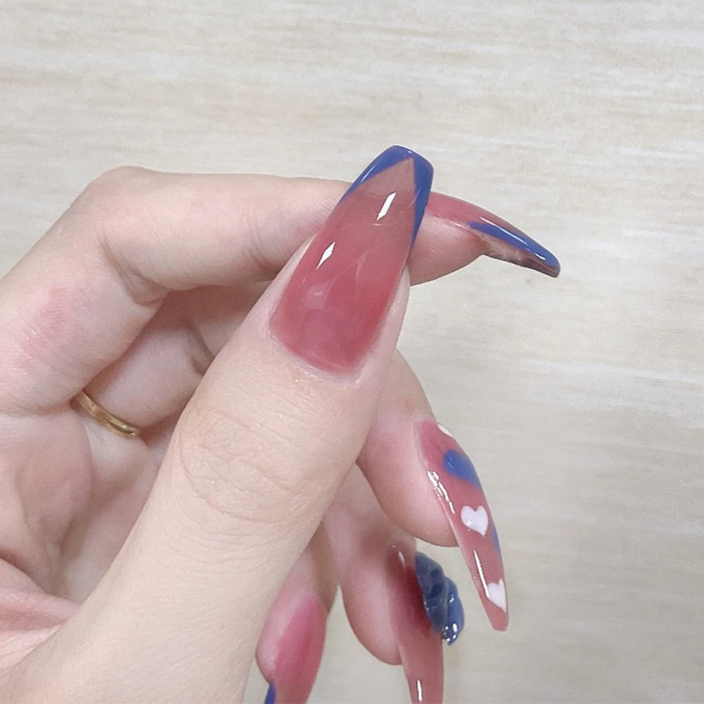 24 шт французские накладные ногти с синими сердечками, дизайн длинн...