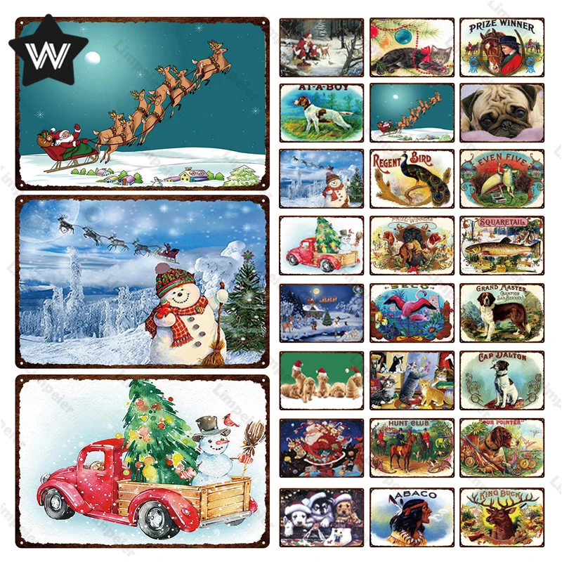 Рождественская настенная наклейка, винтажная металлическая фотонаклейка в стиле ретро, металлическая пластина, жестяные знаки, снеговик, металлическая наклейка s для мужской пещеры, Декор
