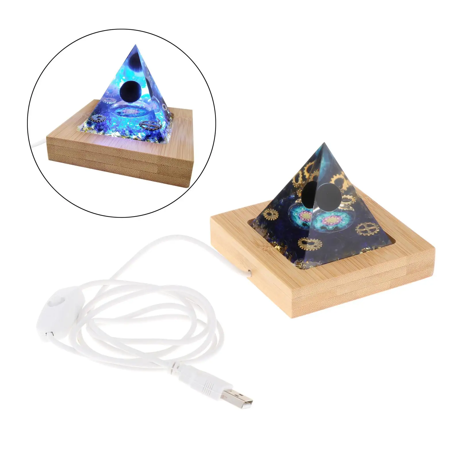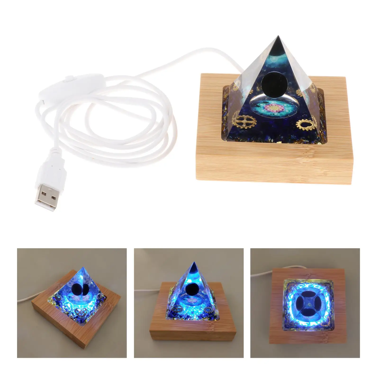 Большой Orgone Пирамида wсветодиодный светильник с деревянной основой, с украшением в виде синих кристаллов и медитации камень декор