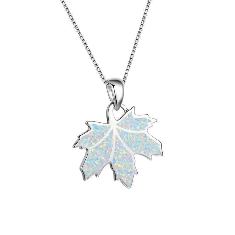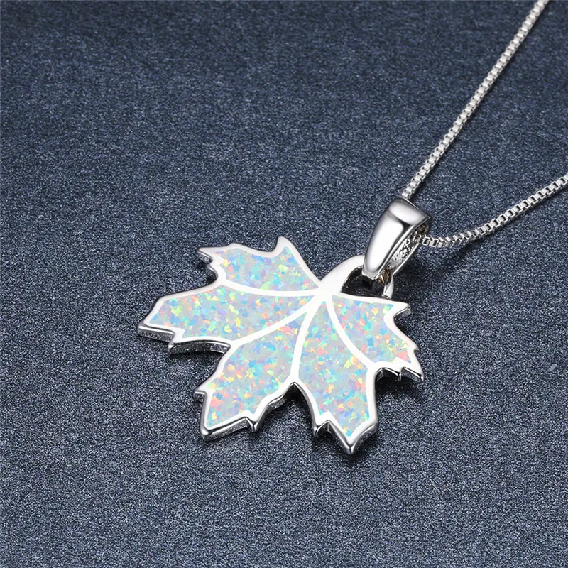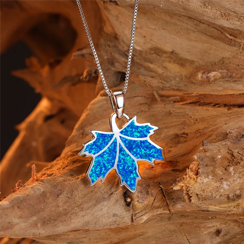 Женское Ожерелье с имитацией опала синего и белого цвета, изящное серебряное ожерелье с цепочкой для женщин, винтажное ювелирное украшение в виде кленового листа для свадьбы