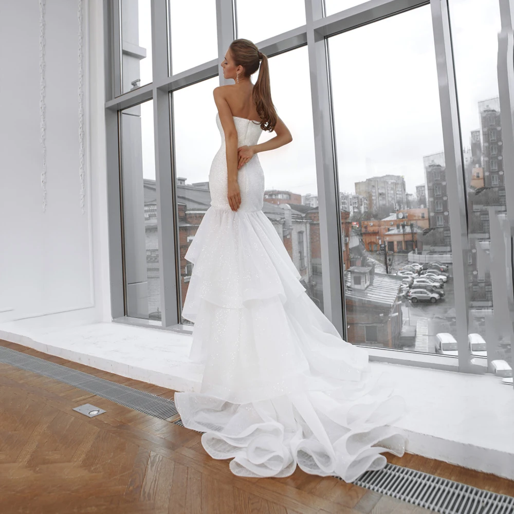 UZN свадебное платье цвета слоновой кости, расшитое блестками милое Многоярусное блестящее свадебное платье на молнии сзади, платье невесты Vestido De Novia