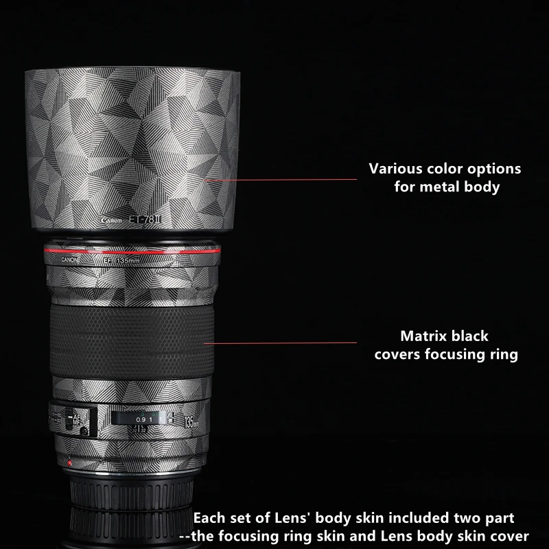 Винил премиум качества, используемый для этой наклейки, легко наносится-без суеты и беспорядка!Посылка включает только защитную пленку для автомобильной камерыСовместим с объективом Canon EF 135 мм f/2L USM(Смотрите видео ниже, чтобы получить полную информацию о том, как применять на корпусе камеры шаг за шагом)Воплотите свои самые красочные концепции в жизнь-практически на поверхностиАвтомобильный винил-идеальная защитная кожа для вашей камеры