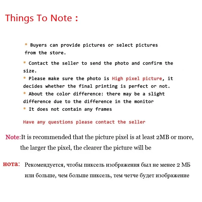 1. Мы даем каждому полотну 3 см дополнительный белый край каждой стороны обрамления, если вам не нужны белые границы или нужны белые границы с другими размерами, пожалуйста, оставьте сообщение при заказе2. Из-за различных эффектов освещения между компьютерными мониторами, сотовыми телефонами цвет объектов будет немного отличаться от изображения в нашем магазине